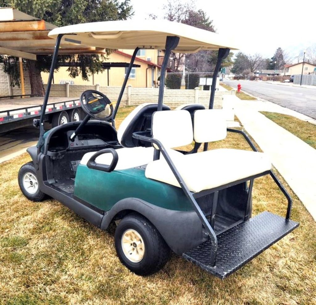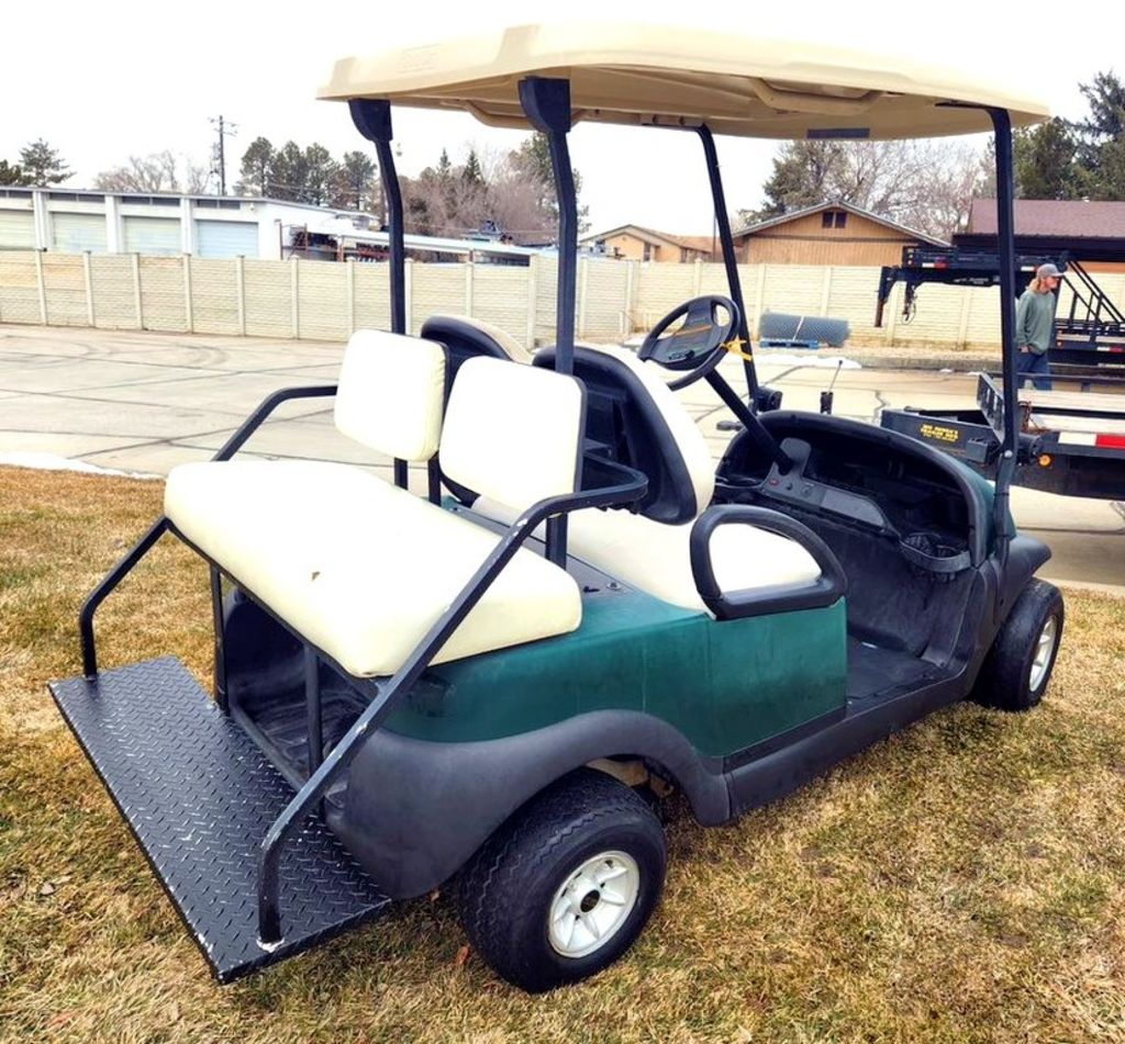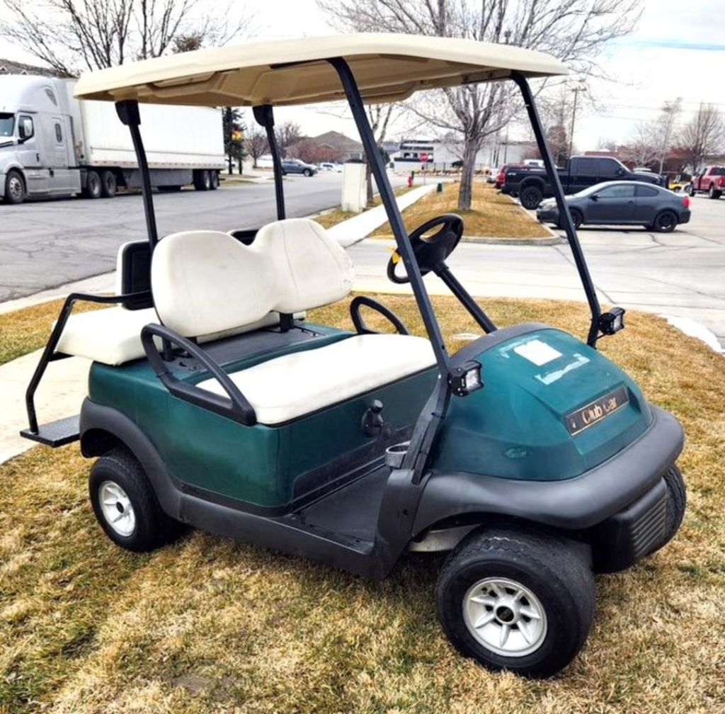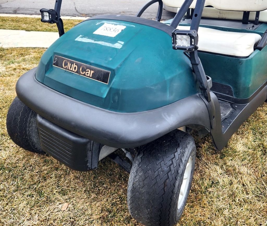 We are featuring 2011 four-passenger metallic jade green Club Car Precedent gas-powered golf cart