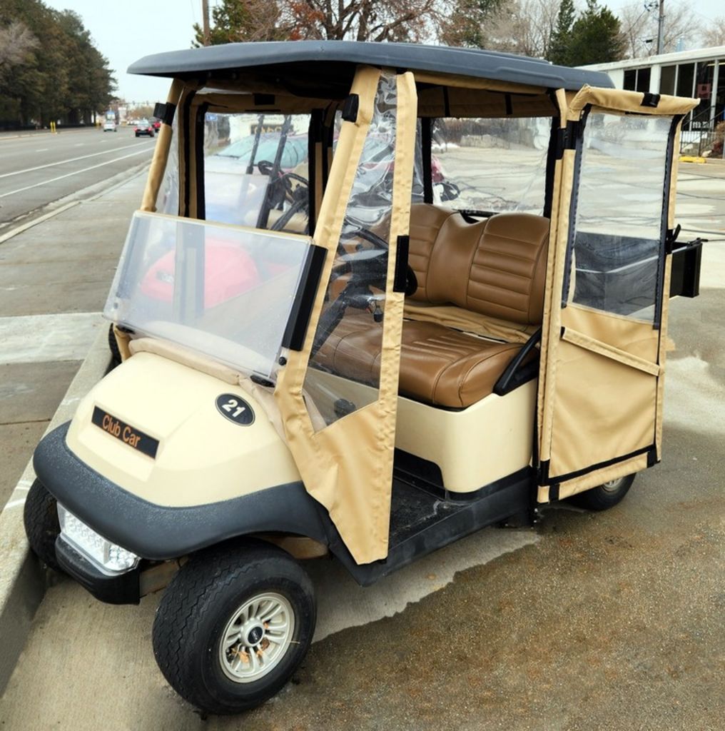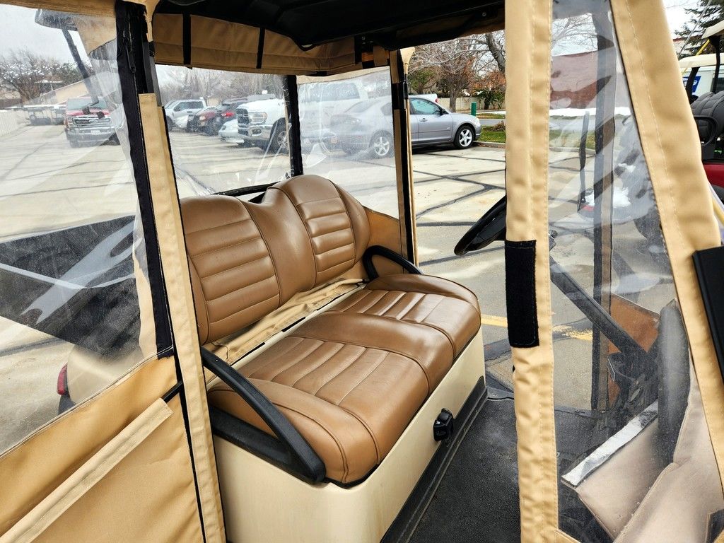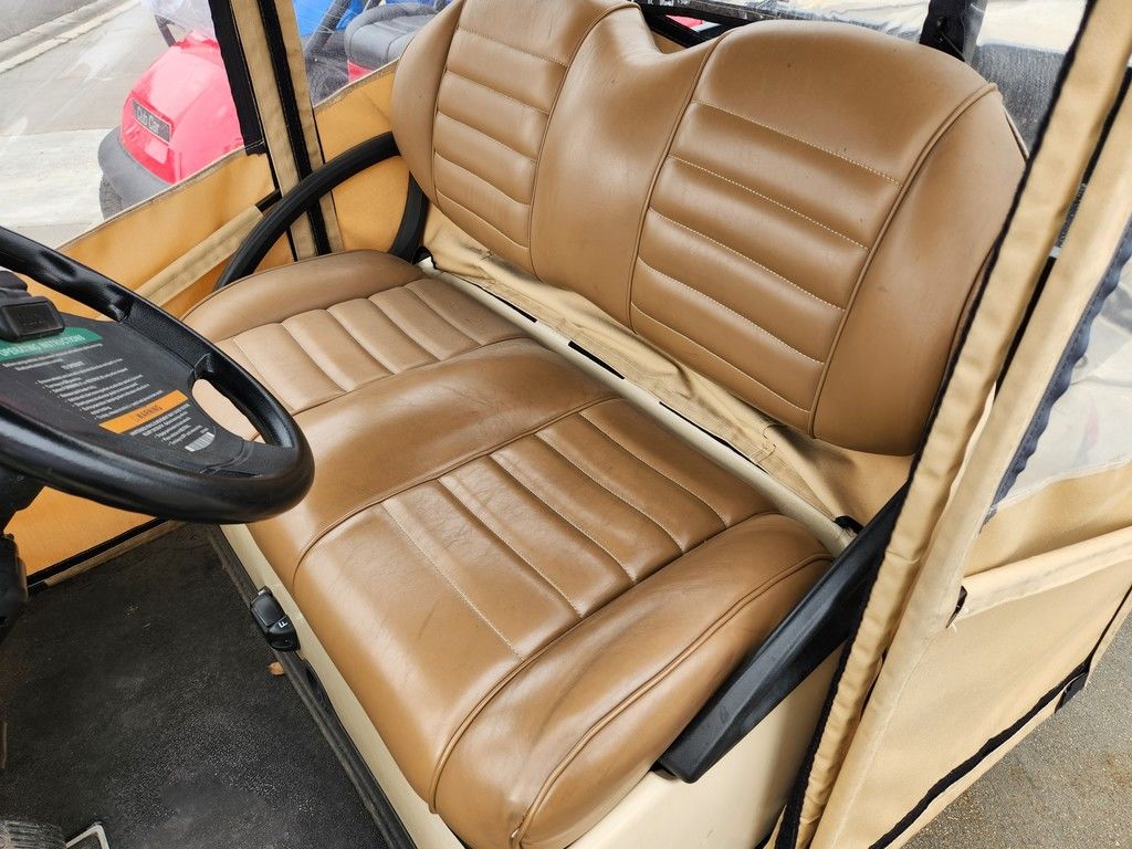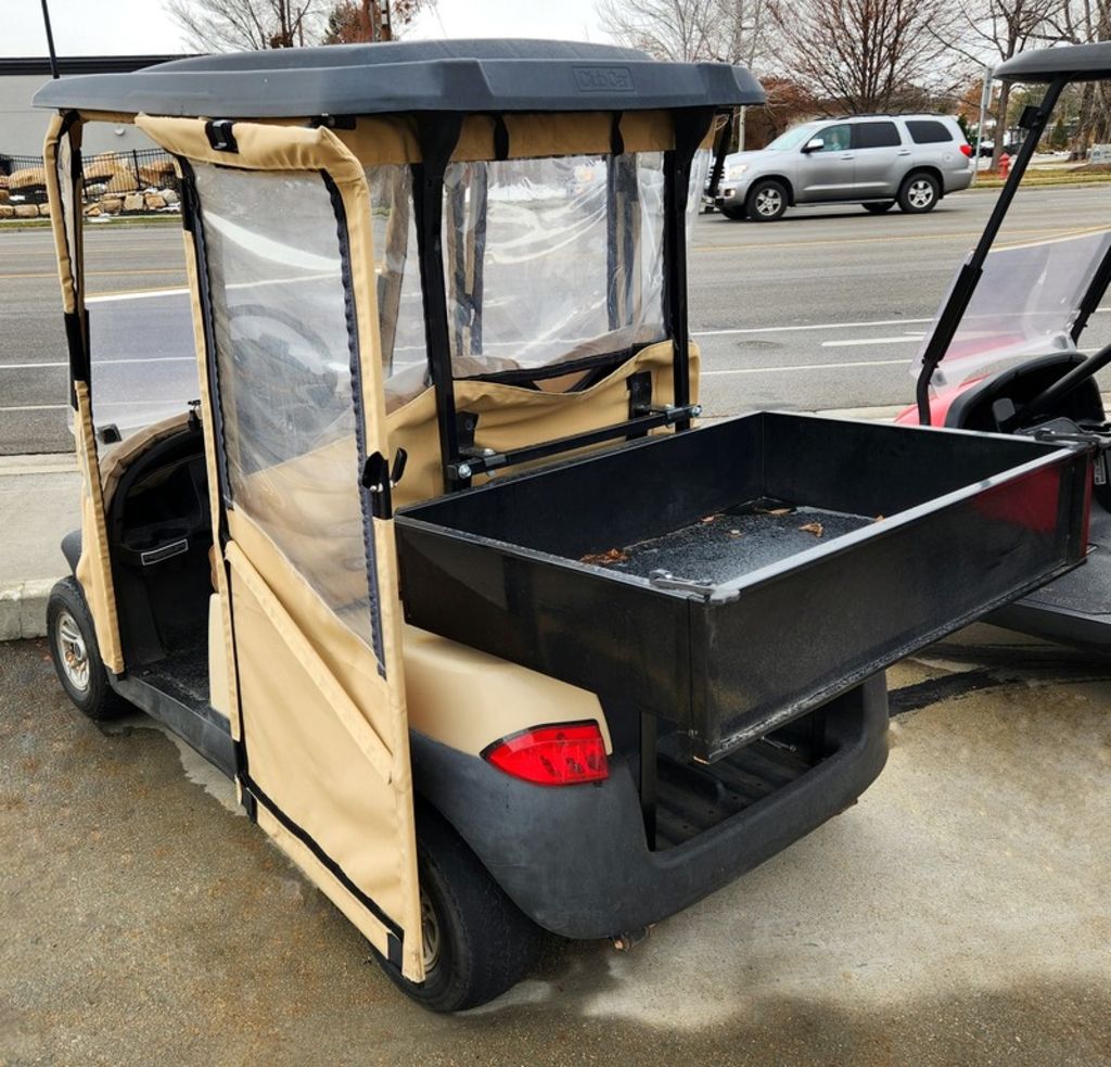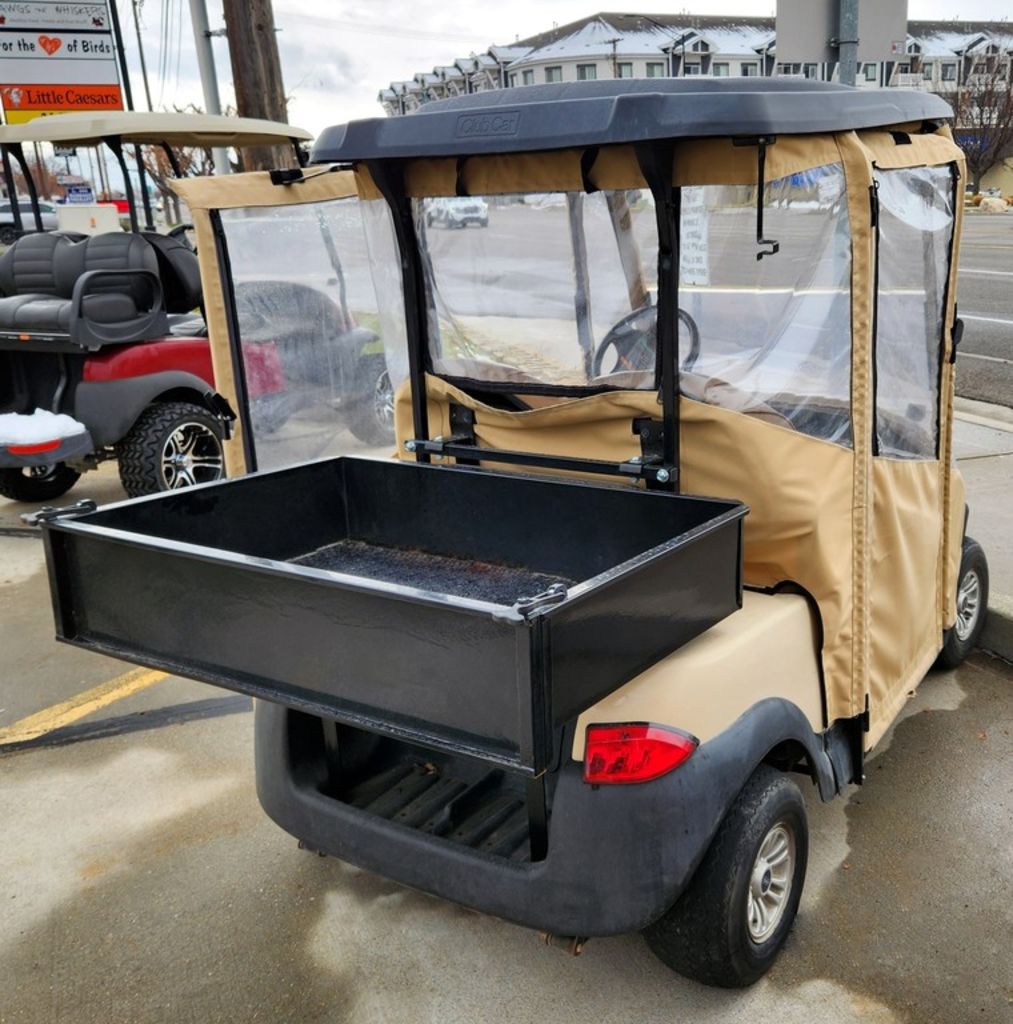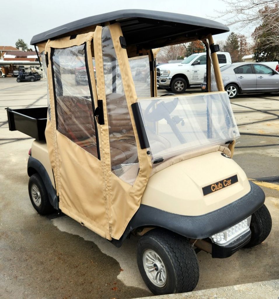 Refurbished 2017 Beige Club Car Precedent Lithium Golf Cart with Utility Bed and Full Enclosure