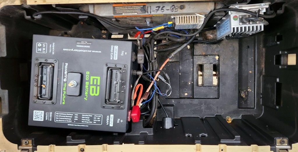 We are featuring a professionally refurbished Club Car Precedent golf cart with utility bed, enclosure, custom wheels, Lithium-ion batteries, and premium seats.