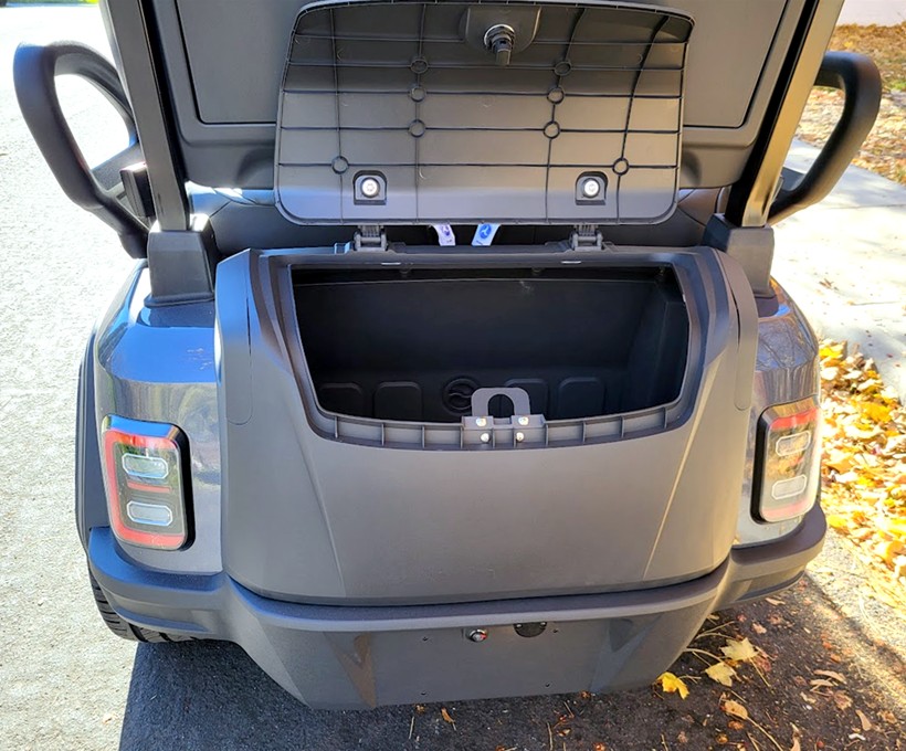 • Lockable Frunk & Rear Trunk – Ice chest + clubs + groceries