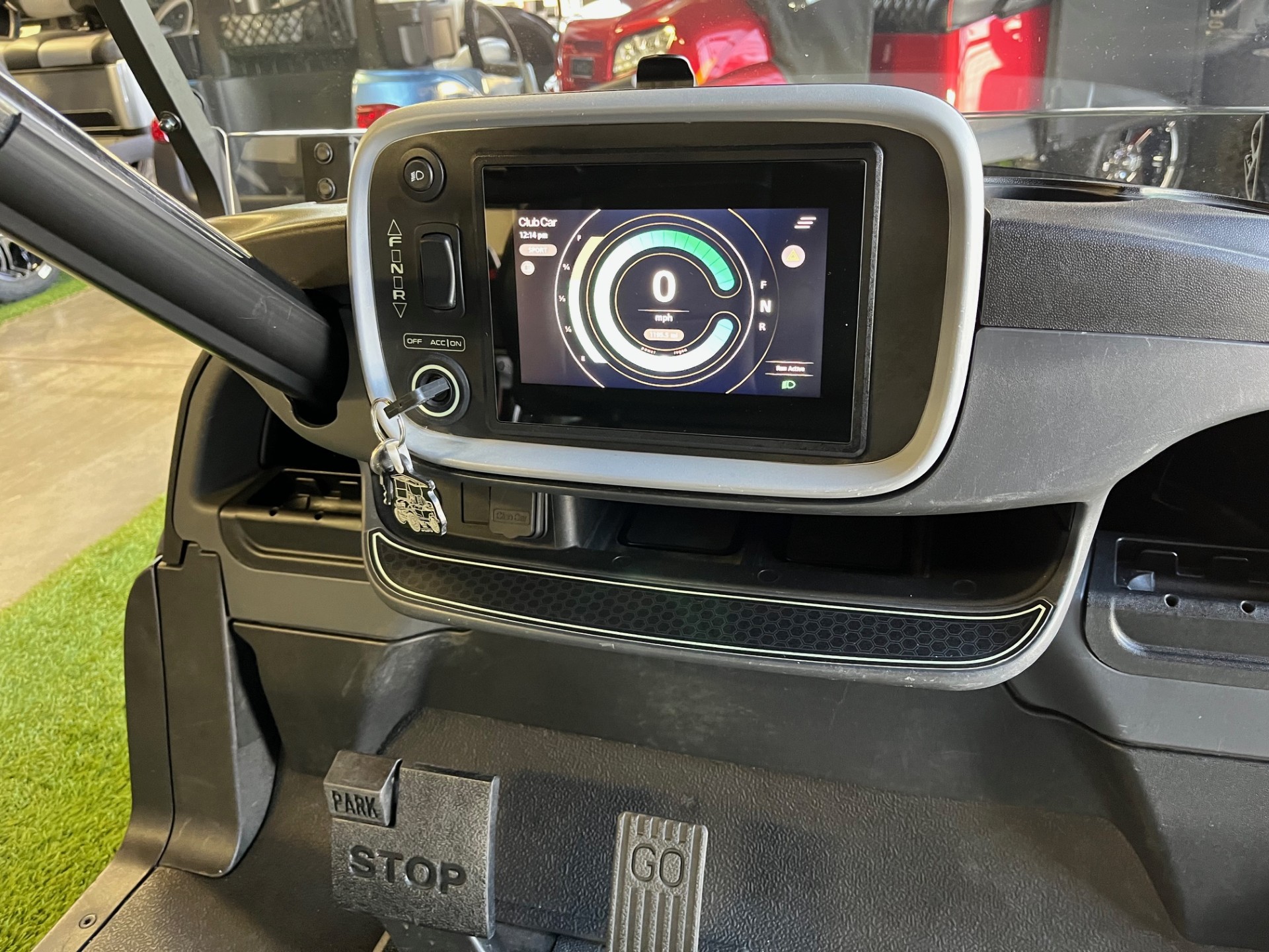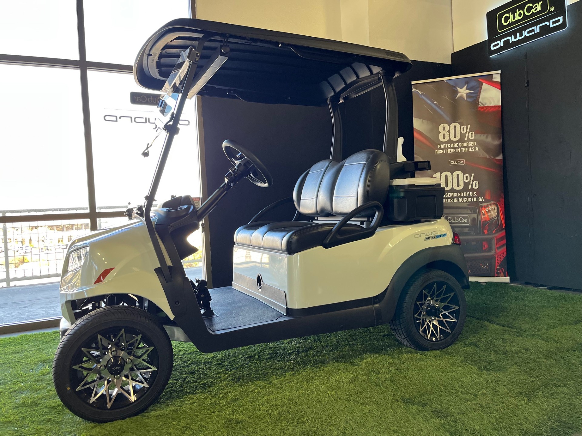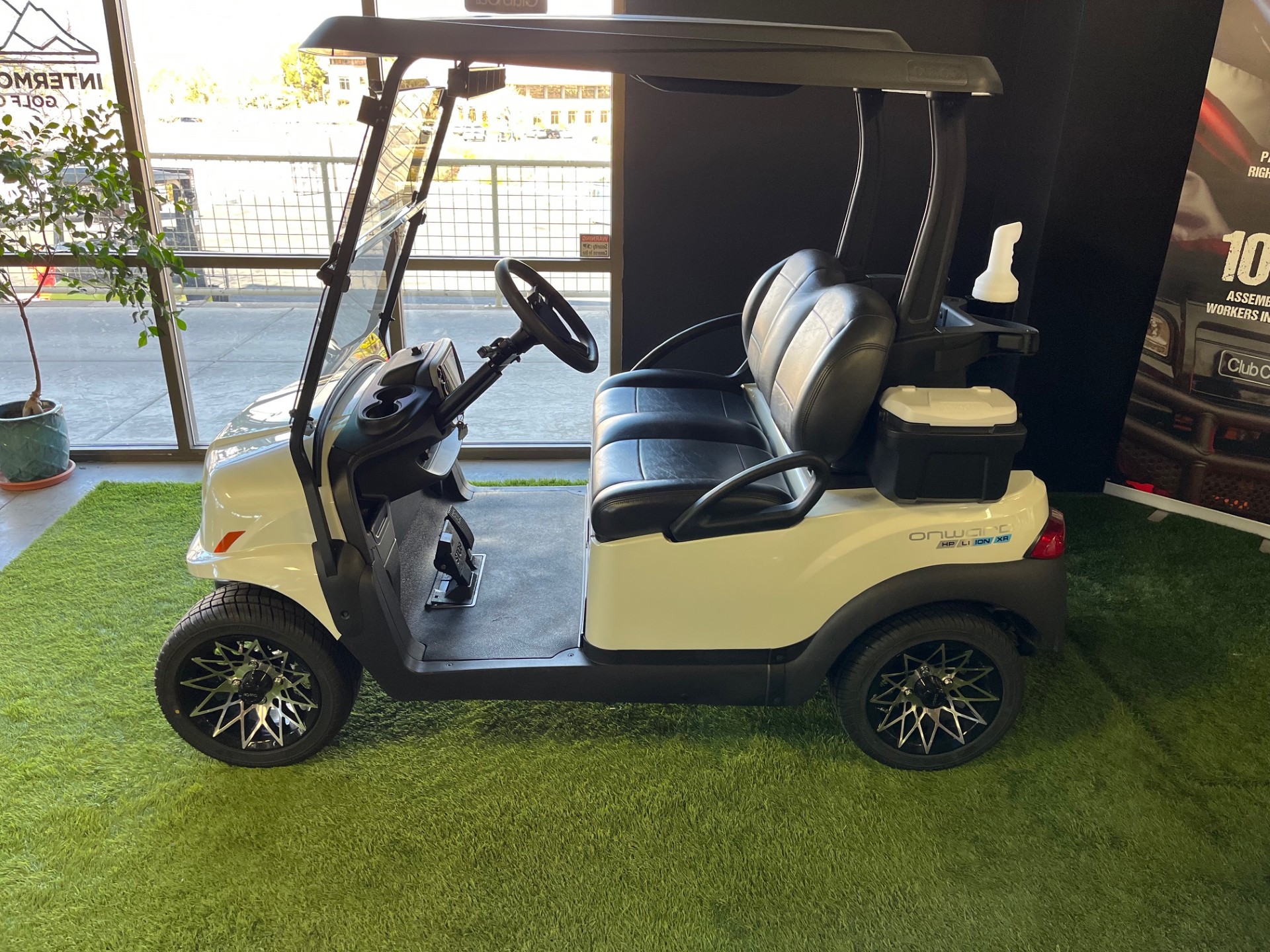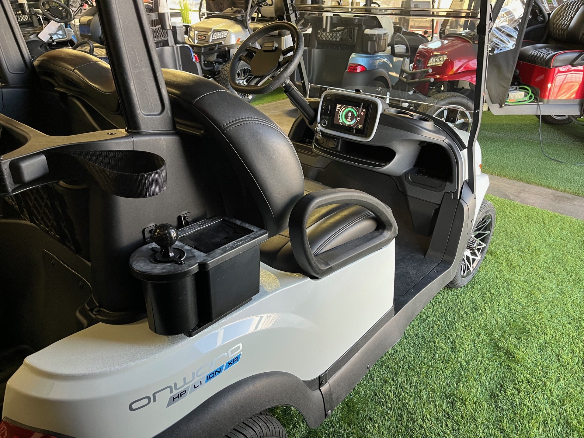 Extended Range Lithium Battery w/ Charger, Premium Seating, New Premium Tinted/Folding Windshield, Digital Display, USB/USB-C Port, Wireless Phone Charger x2, 5-Panel Mirror, 12″ Athena Wheels/Tires, Cooler, Sand/Seed Bottle, Ball/Club Washer.