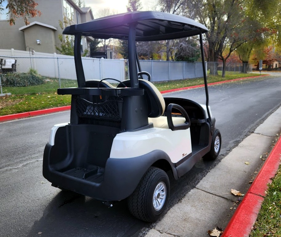 In our Sandy, UT Dealership we are featuring a NEW white gas Club Car Tempo.