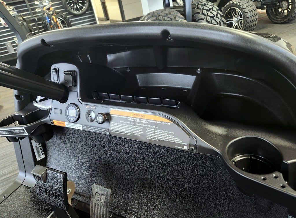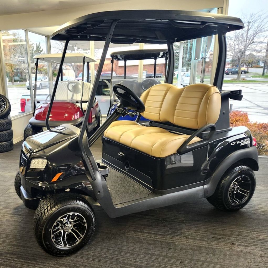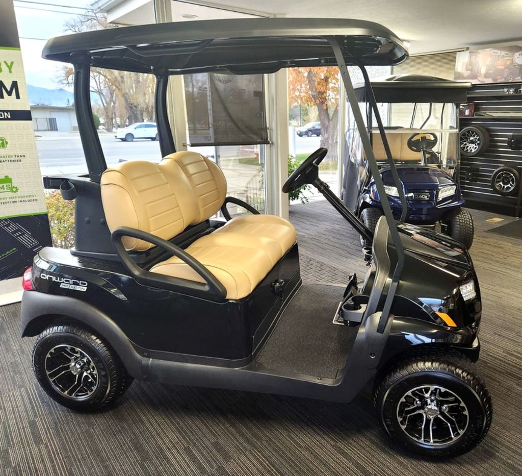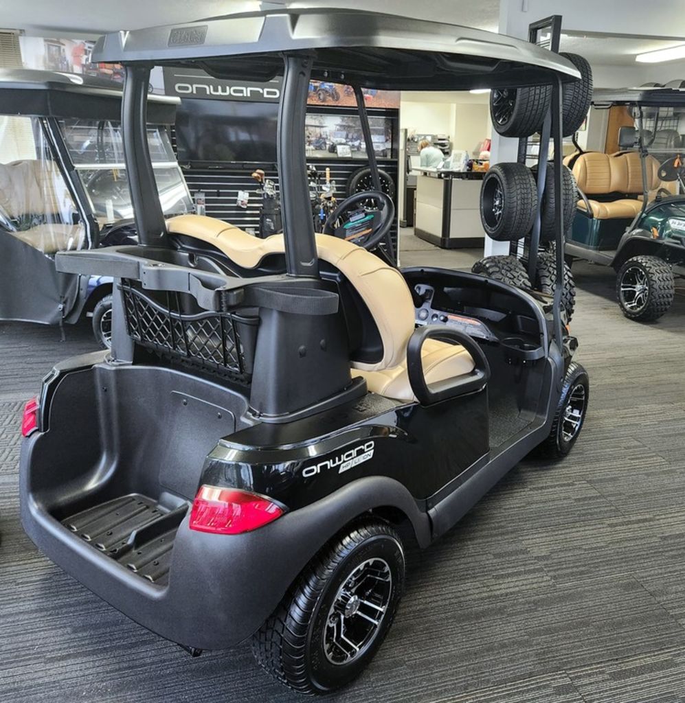 We are featuring a new 4-passenger 2024 Lithium-ion, metallic tuxedo black Club Car ONWARD golf cart.