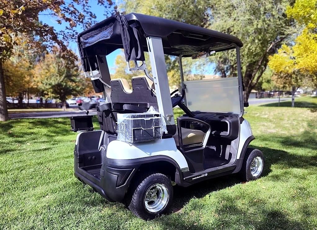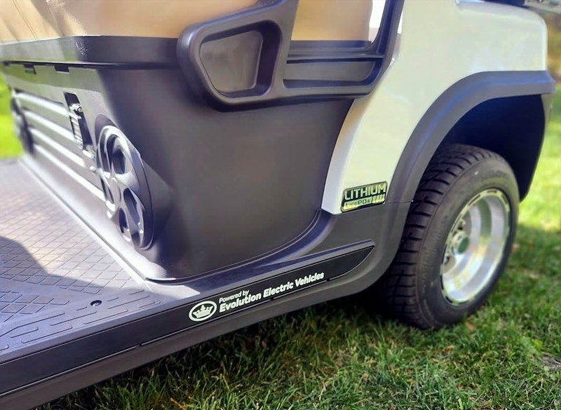 In our Sandy, Utah, dealership, we are featuring the all new Arctic White Evolution Tara Spirit Golf Cart with lithium battery.