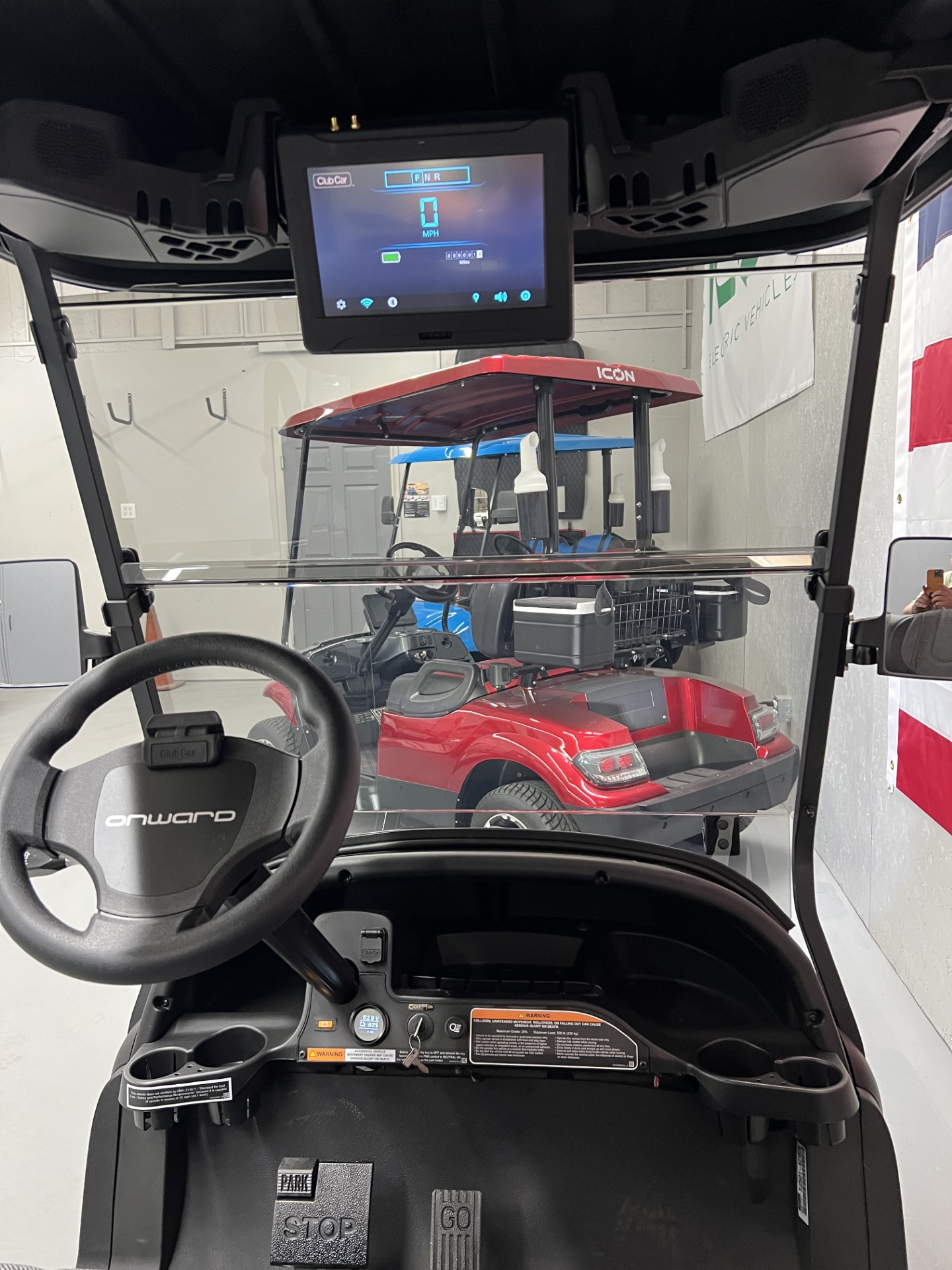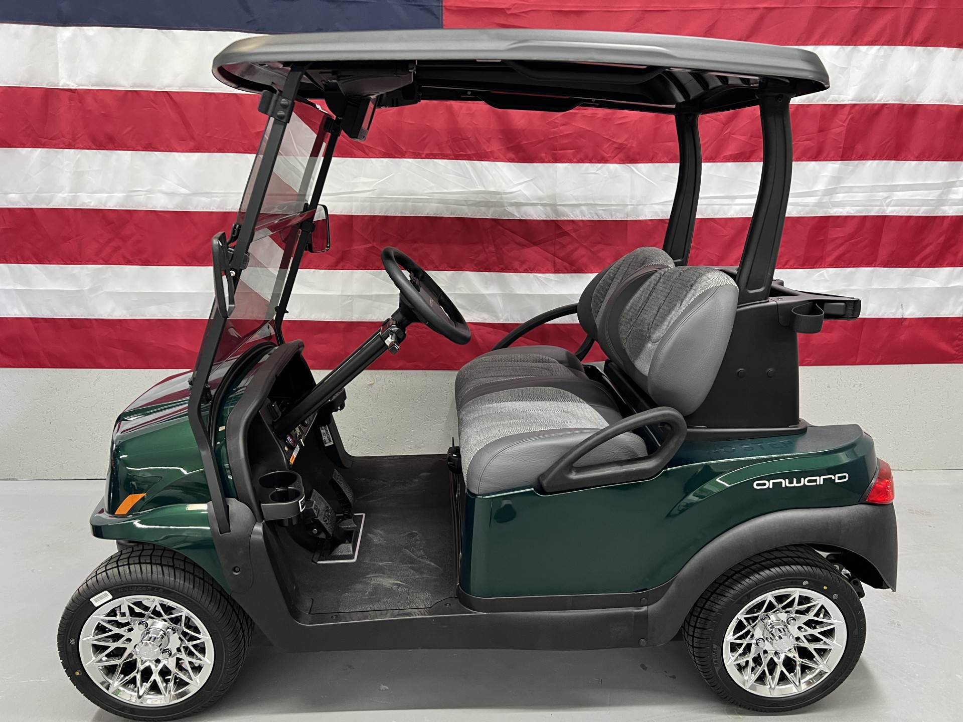 Brand New 2025 Metallic Jade Green Club Car ONWARD – Digital Display, 51V/105ah Lithium Battery, Lights, USB, and 5-Panel Mirror