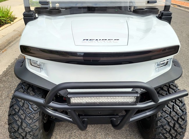 Now available at Intermountain Golf Cars in St. George, Utah: 2025 Denago EV Rover XL LSV.  This lifted 4-passenger golf cart is street-legal-ready and packed with premium features for style, performance, and convenience.