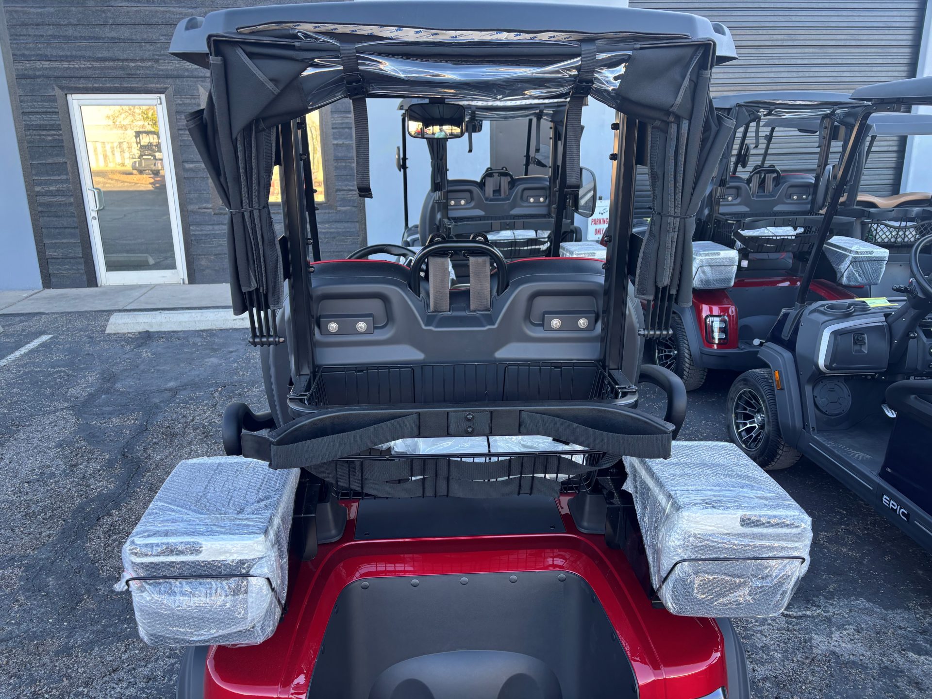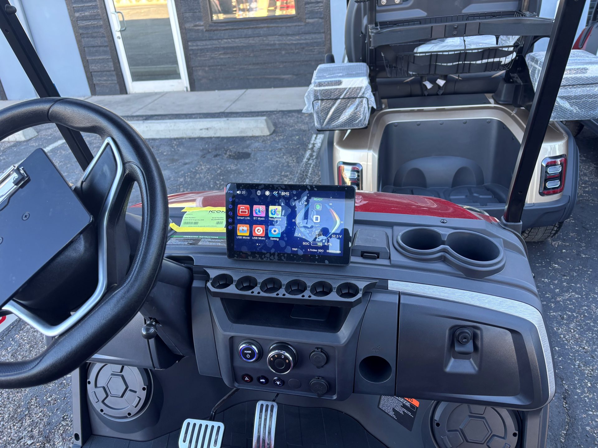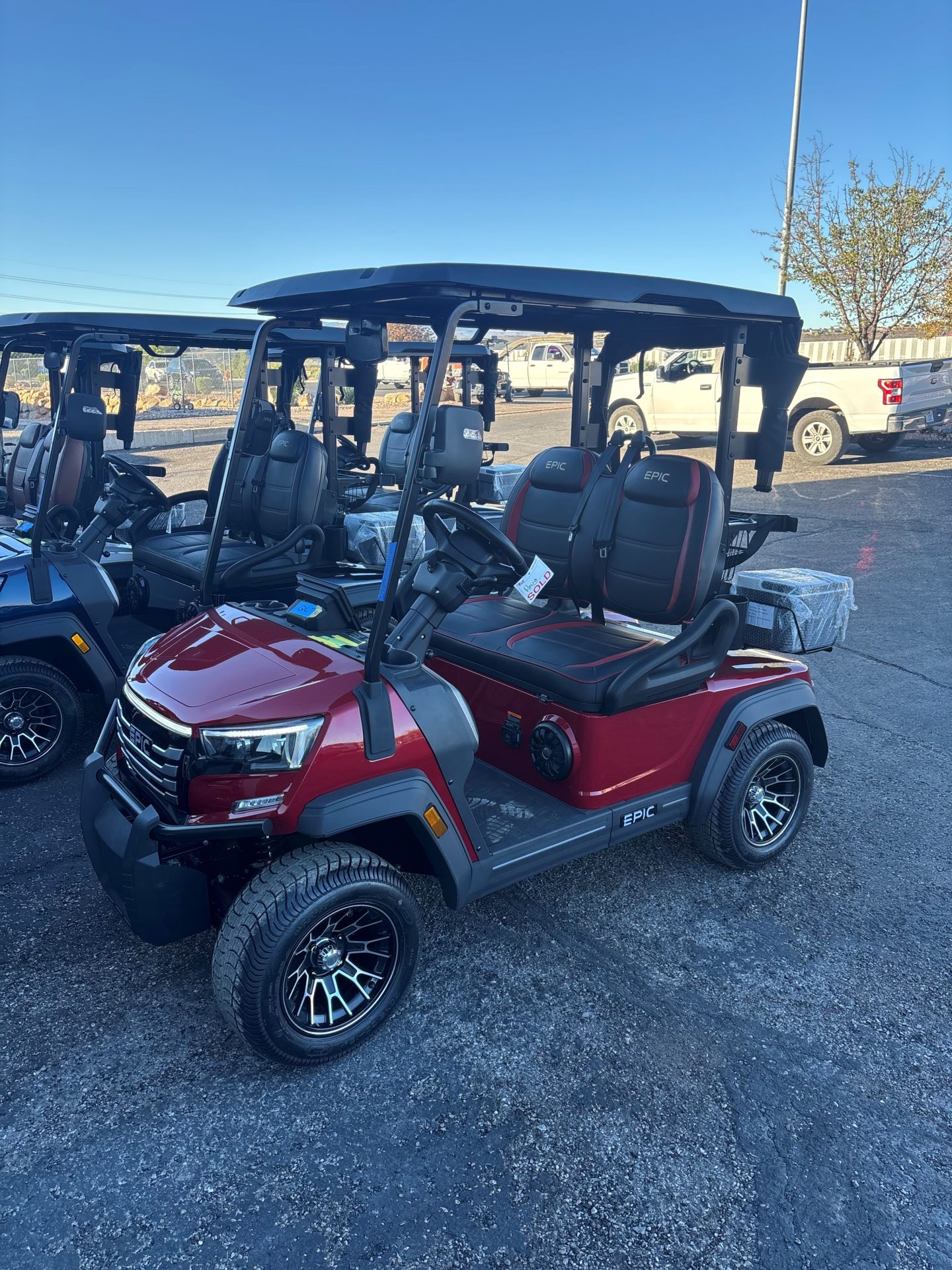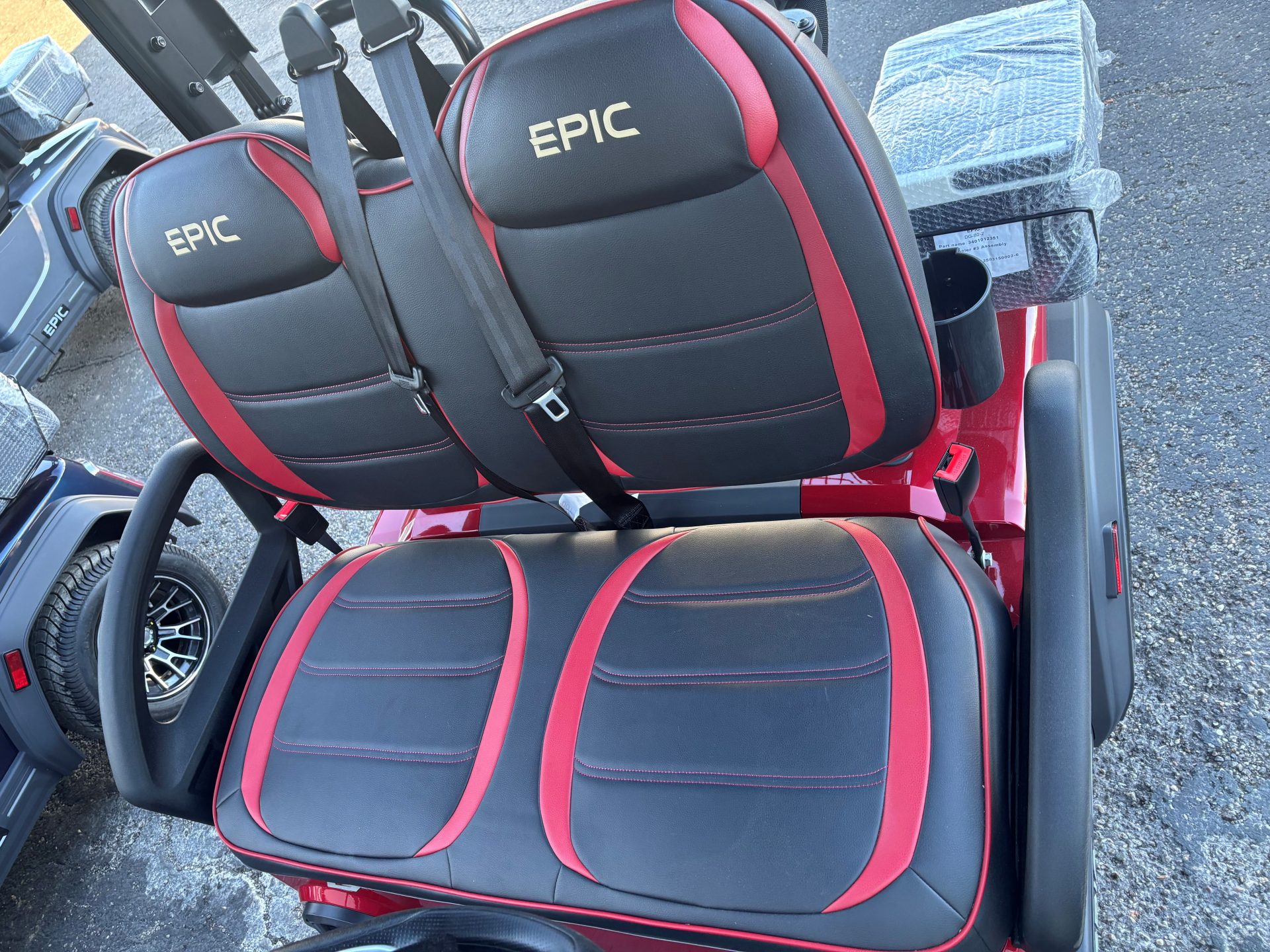 The brand new Epic E20FX golf cart model is creating quite the buzz industry-wide! Furnished with every desirable feature, this two-seater Epic golf cart comes in seven stylish metallic colors. Premium 12” turf friendly tires provide a super smooth and enjoyable ride on and off the golf course. With a top of the line built-in marine-grade sound system, stunning accent lighting, and a rear golf kit with two coolers, two sand bottles, and two golf bag holders, and golf bag rain cover, this Epic E20FX golf cart will make you the envy of every golfer on and off the course!