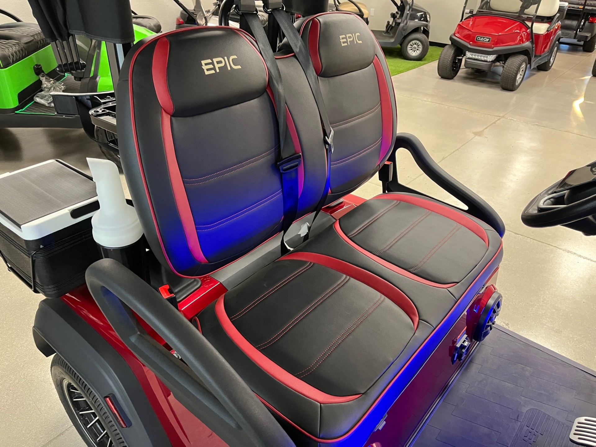 105ah Eco Lithium Battery w/ On-Board Charger, Digital Display w/ Bluetooth Stereo System, LED Lighting, 25mph! Upgraded Wheels/Tires, Premium Folding Windshield, Locking Storage, Premium Color Matched Seating, Seat Belts, Rear View and Side Mirrors
