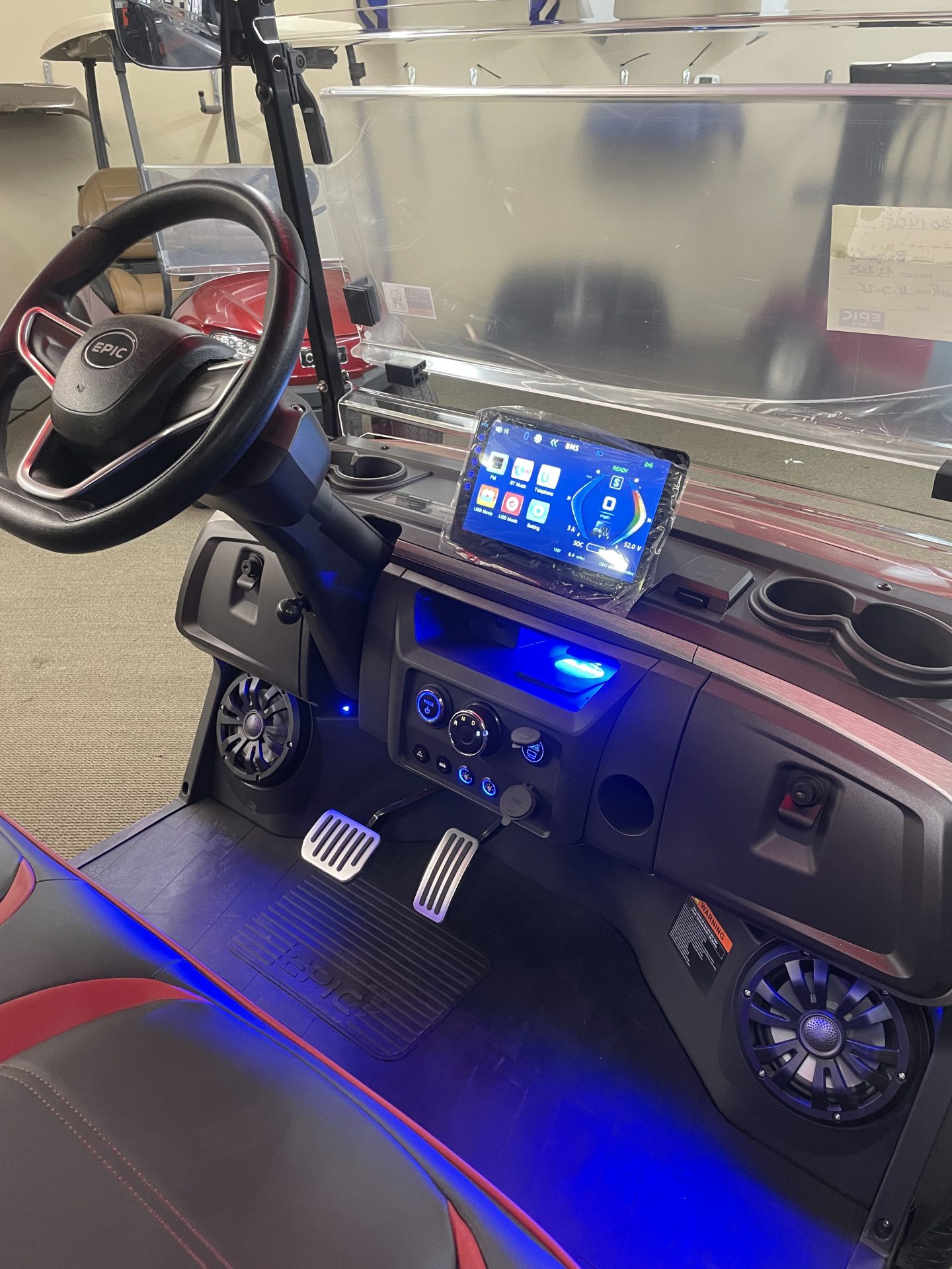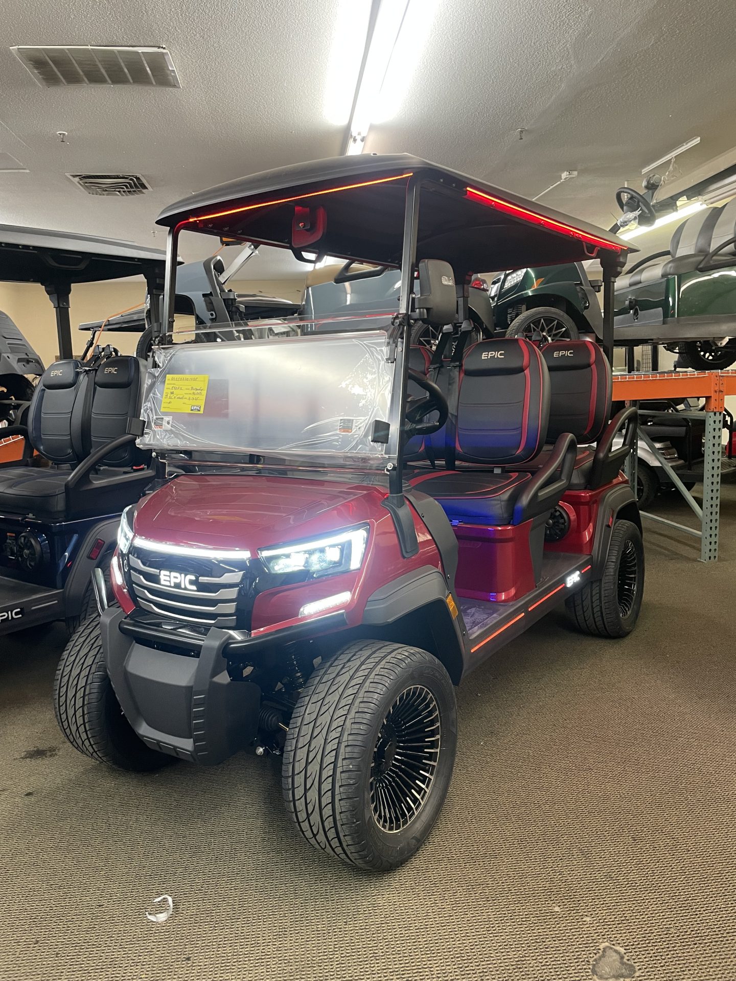 Introducing the 2025 Epic E40 Golf Cart, where cutting-edge technology meets unparalleled style. Perfect for golf enthusiasts or those simply seeking a smooth ride around the neighborhood, this brand-new golf cart is designed to impress both in functionality and aesthetics. The Epic E40 is powered by an advanced Lithium-Ion battery. Say goodbye to frequent charging and hello to more time on the move. Its whisper-quiet operation ensures that your journeys are peaceful and serene, whether you’re cruising the golf course or navigating community paths. Step inside and discover comfortable seating for up to four passengers, making it ideal for family outings or group adventures. The spacious layout is designed with premium materials and finishes, providing a luxurious feel while maintaining the practicality you need. The 2025 Epic E40 boasts a sleek and modern exterior design that turns heads wherever you go. Its aerodynamic structure not only enhances its stylish look but also contributes to its impressive performance. With its robust build, this golf cart promises durability and reliability, ensuring countless hours of joyous rides.