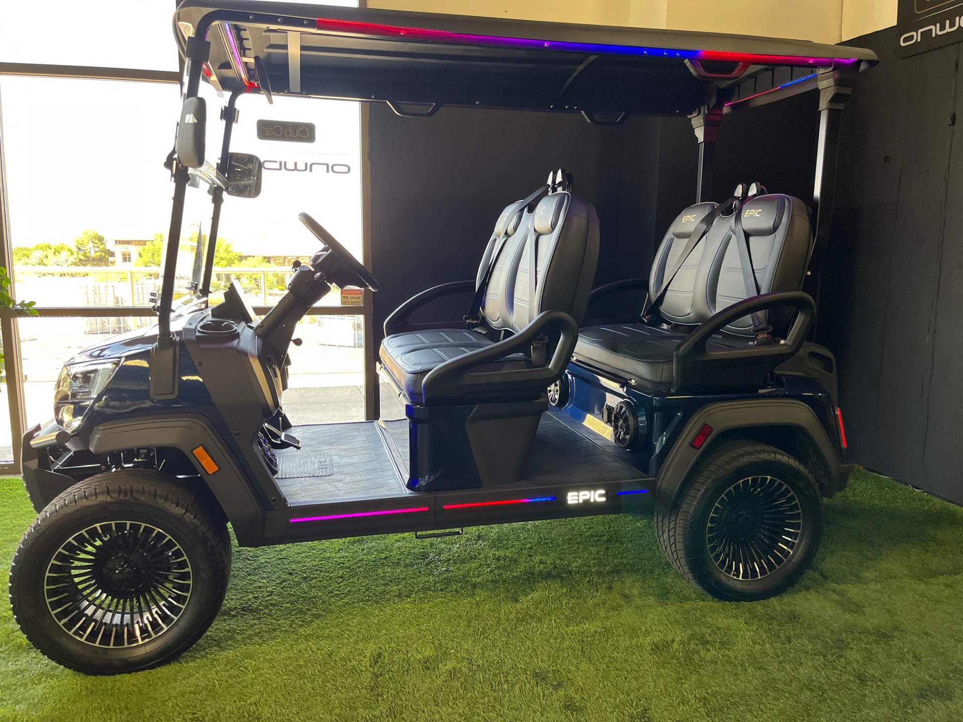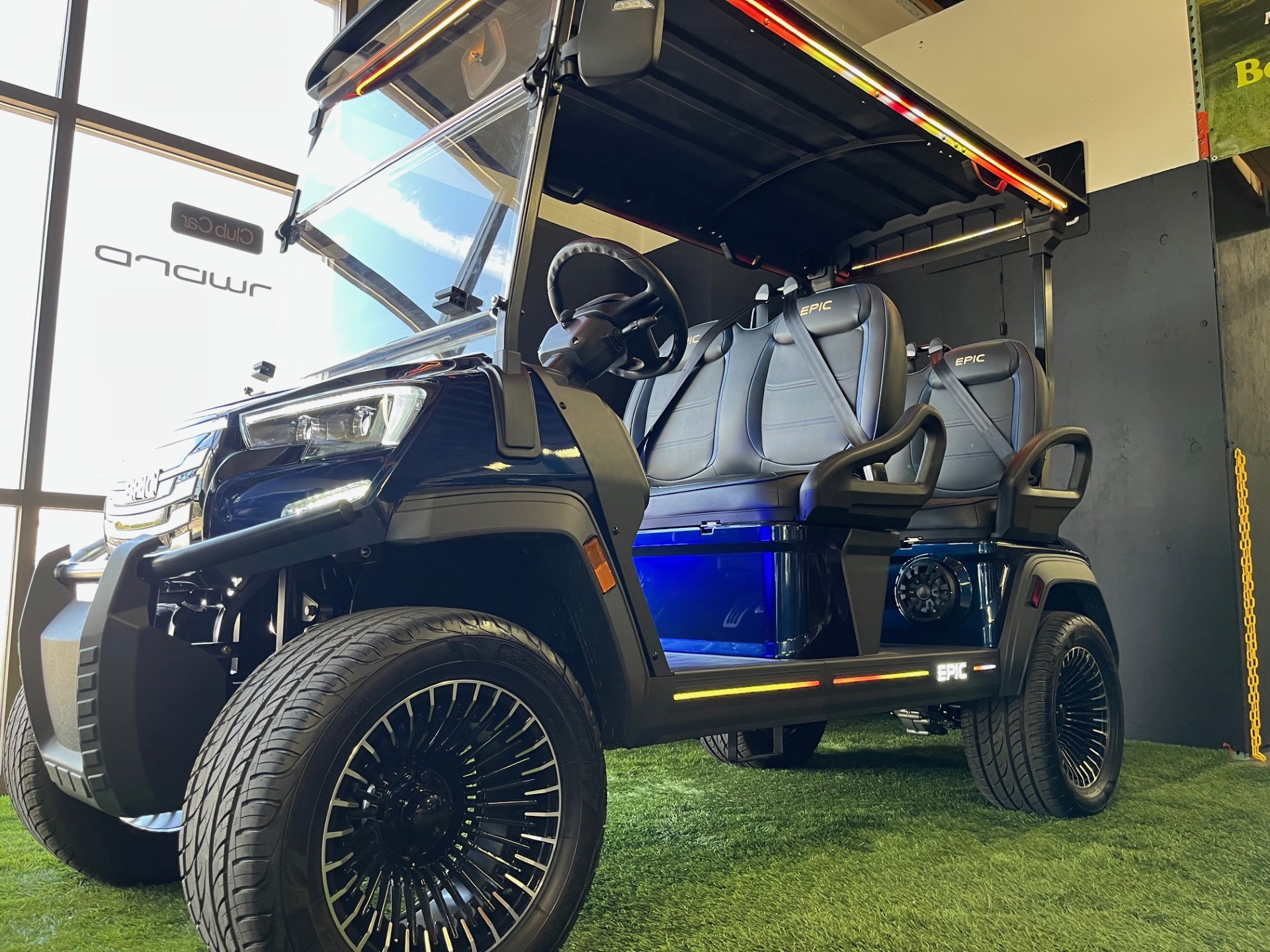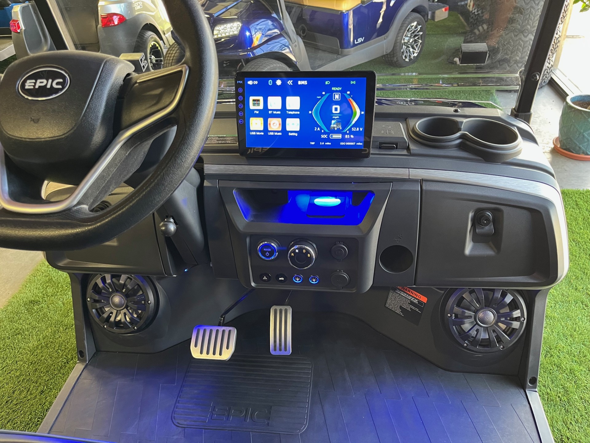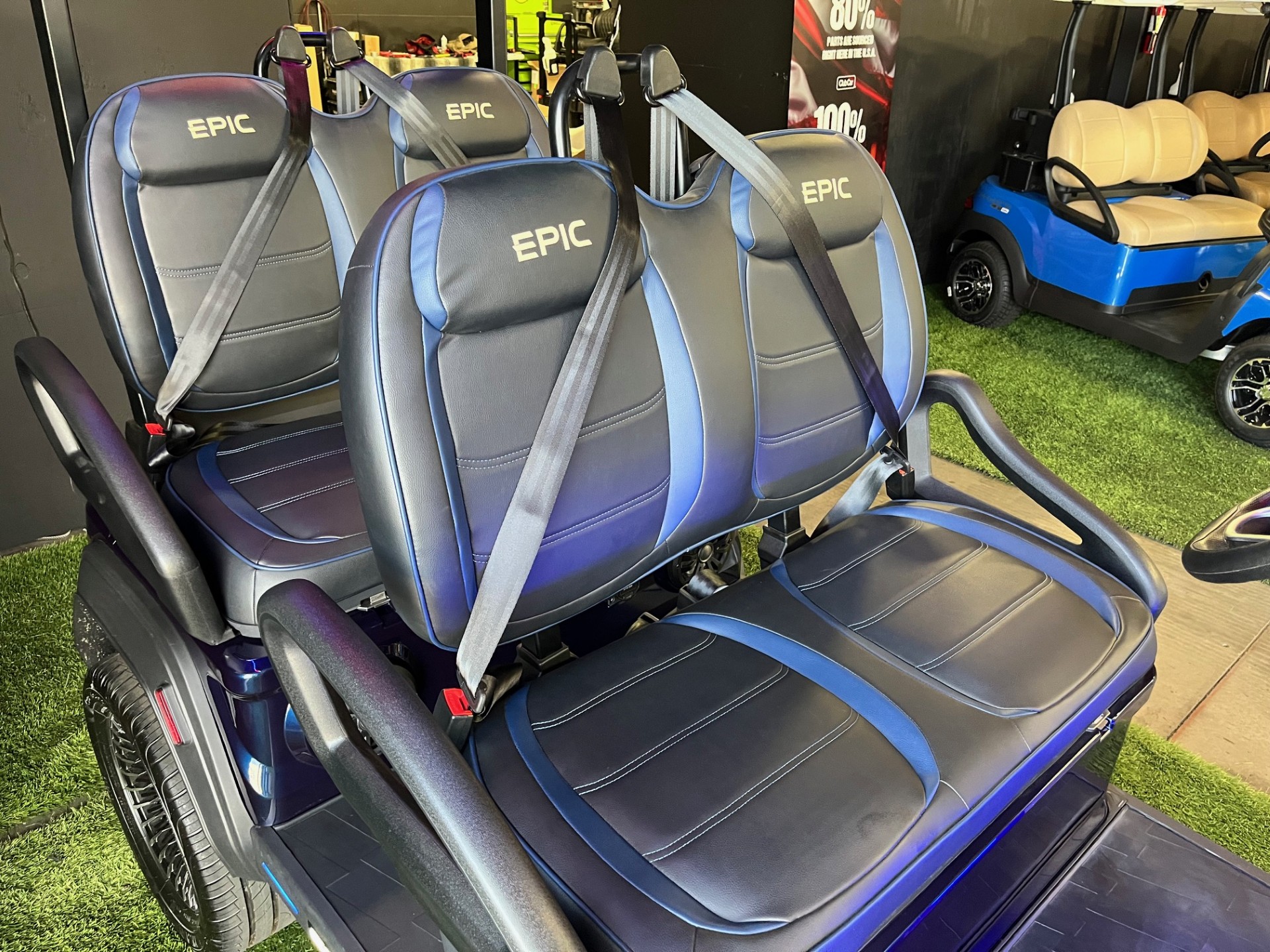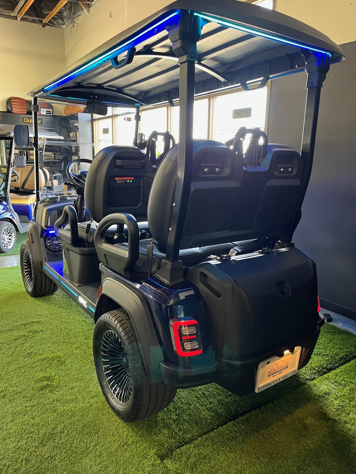 Metallic Midnight Paint, Premium Color Matched Seating, Seat Belts, Digital Display, FM Radio w/ Bluetooth, LED Party Lights w/ Remote, Eco Lithium Battery w/ On-Board Charger, USB Charge Port, 25 mph!