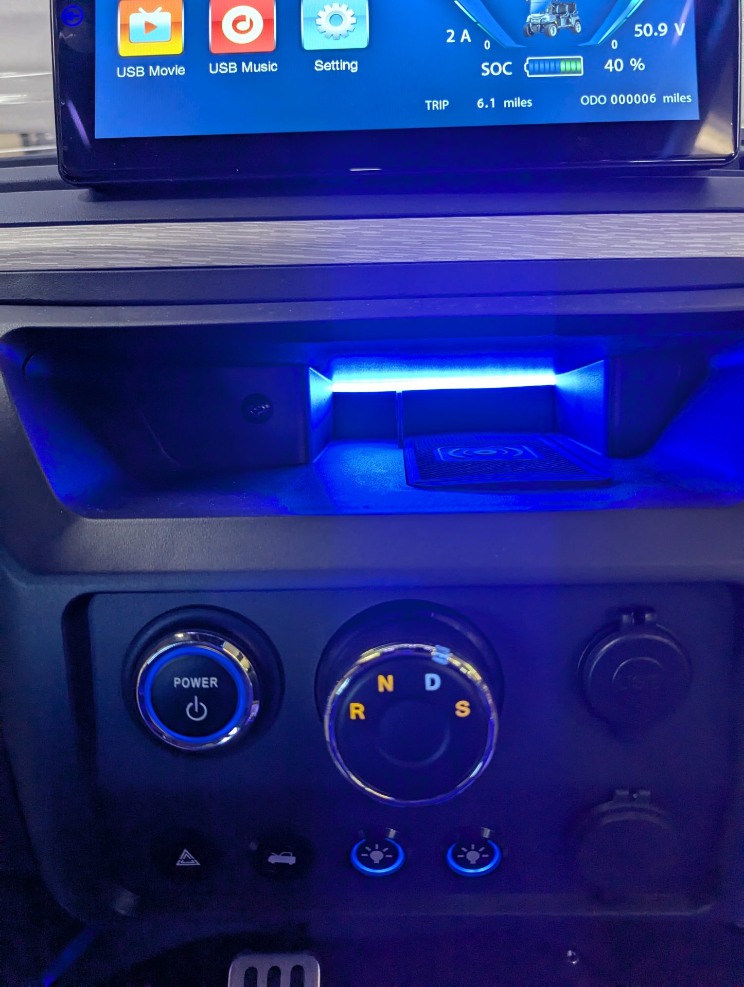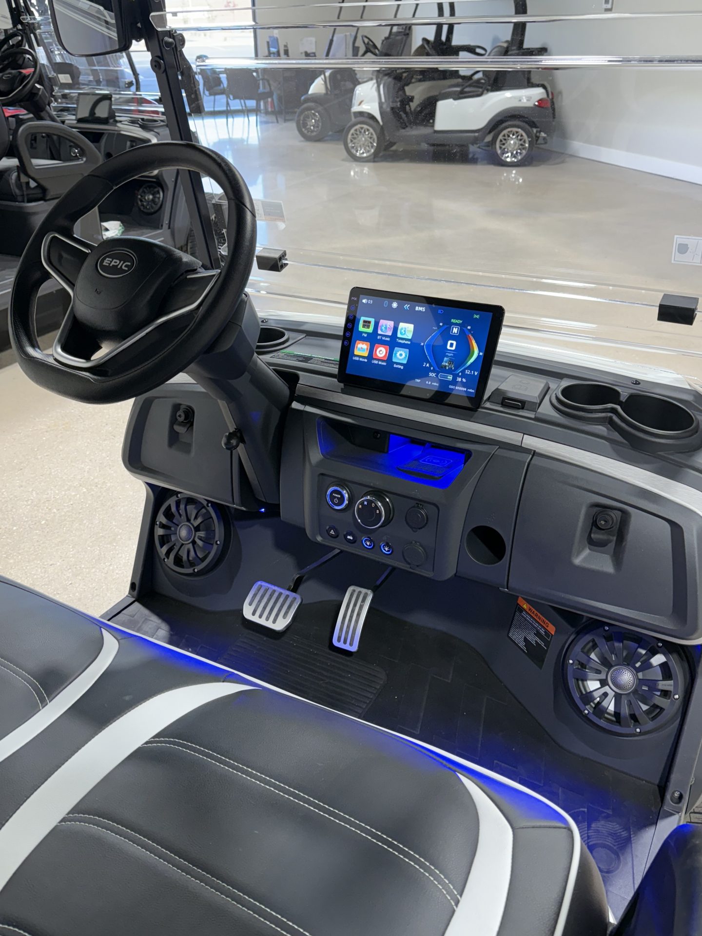 Luxurious Carbon Fiber Style Dash, Locking Glove Compartments, 10.1” Digital Display Screen, Backup Camera, DOT Windshield, USB Ports & Pre-Wired 12v Switches, Horn, Digital Gauges, Lit License Plate Bracket, Built-in ECOXGear Marine Grade Sound System with 7.5A 360W Amp & Four 6.5” Speakers, Removable & Lockable Trunk in Rear, Latched and Lit Frunk, Storage Tray Beneath Rear Seats, Wireless Cell Phone Charging Pad, Tilt Steering, Horn in Steering Wheel, Umbrella Holder