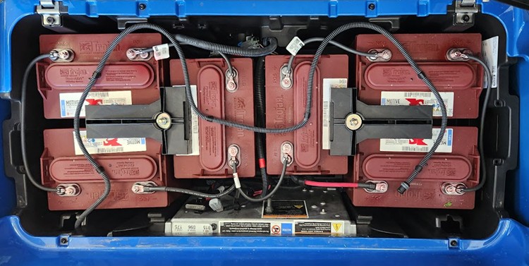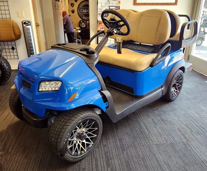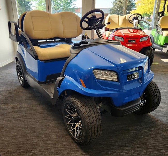 Now available at our Sandy location: a 2026 Club Car ONWARD electric golf cart. It has room for 4 passengers and a stunning Metallic Brilliant Blue finish. It also features Trojan Batteries and premium options.