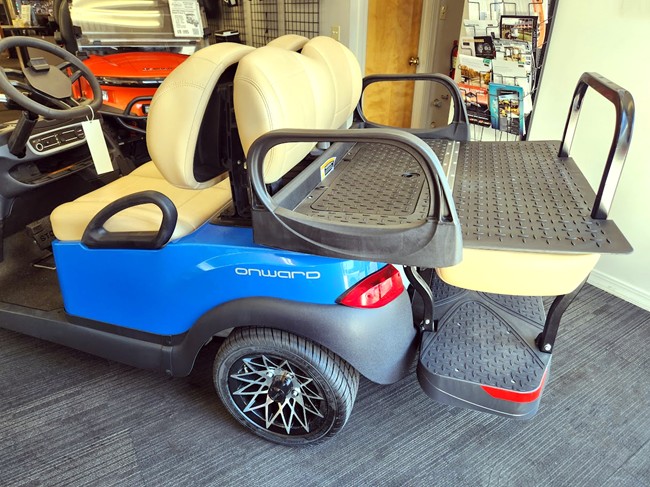 The Club Car ONWARD is and has been the leader in the golf car industry. The strong, rust-free aluminum frame is made from aircraft-grade material. It has molded color bodies for a better finish and long-lasting durability. It also has the best turning radius in its class. The Club Car Onward has great style, new features, and strong durability. It will be a great addition to your garage or golf game.