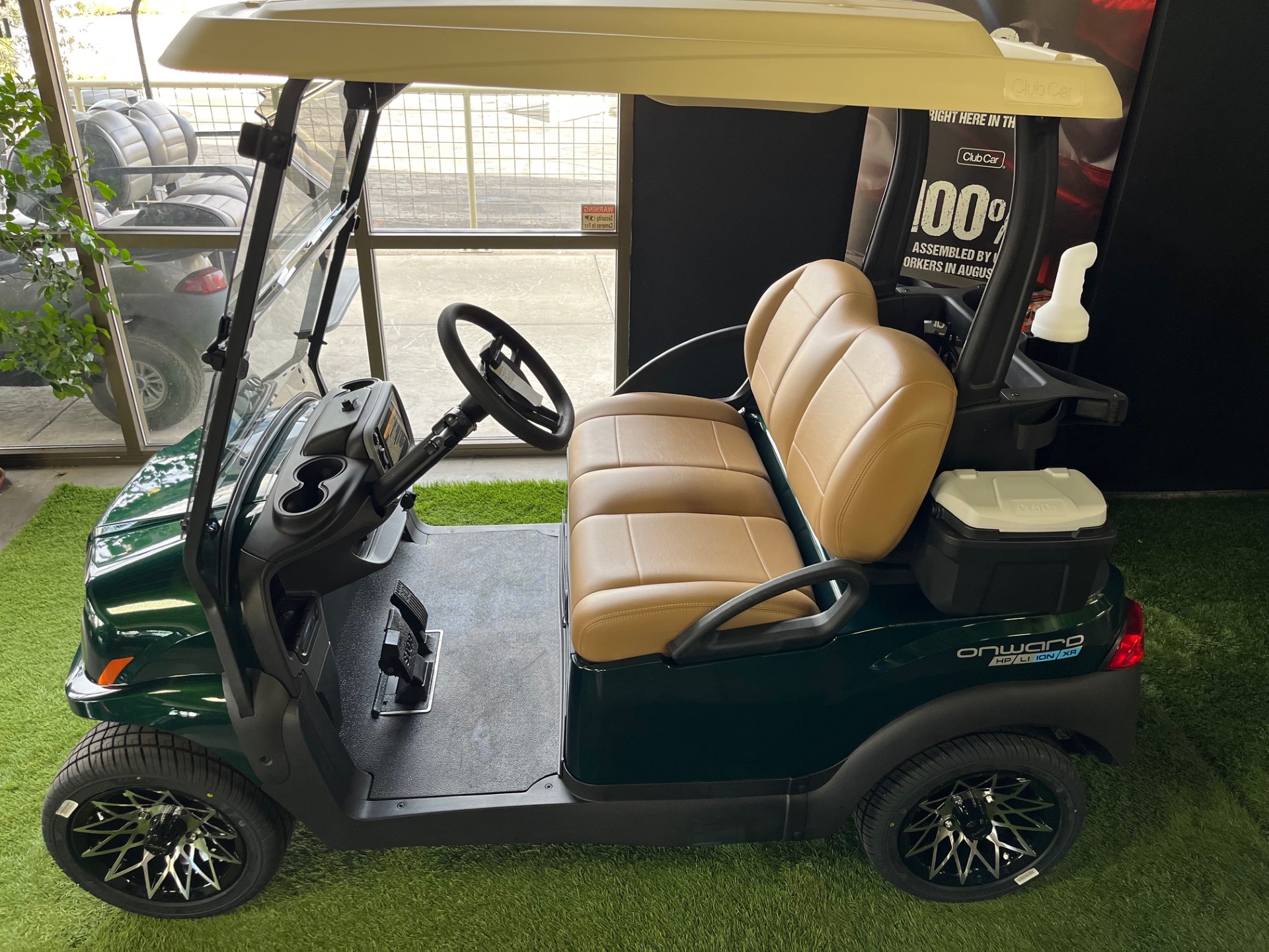 Extended Range Lithium Battery w/ Charger, Premium Camello Seating, Tinted/Folding Windshield, Digital Display, Wireless Phone Charger x2, USB/USB-C Port, Locking Storage, 5-Panel Mirror, 12″ Athena Wheels/Tires, Cooler x2, Sand/Seed Bottle.