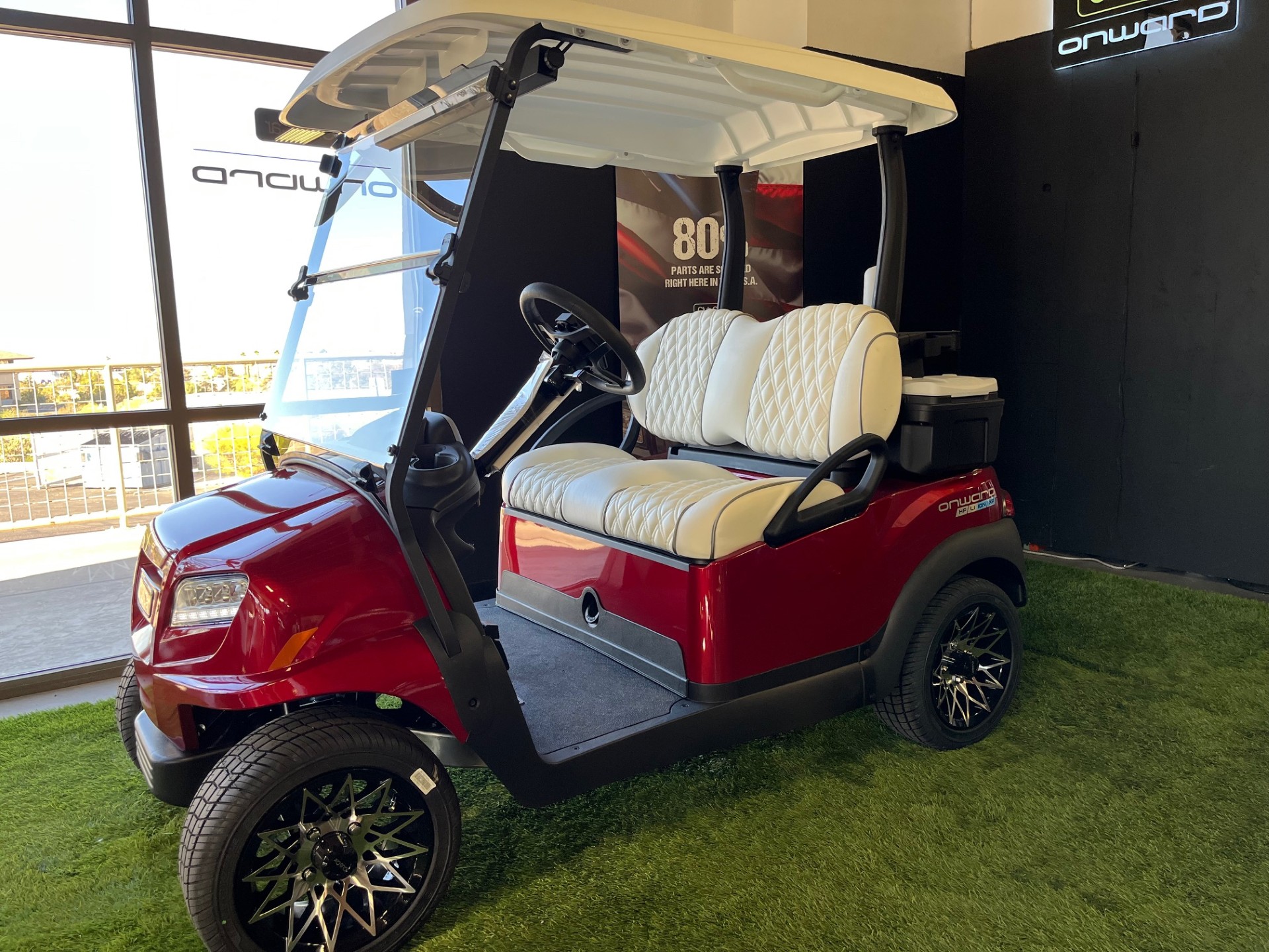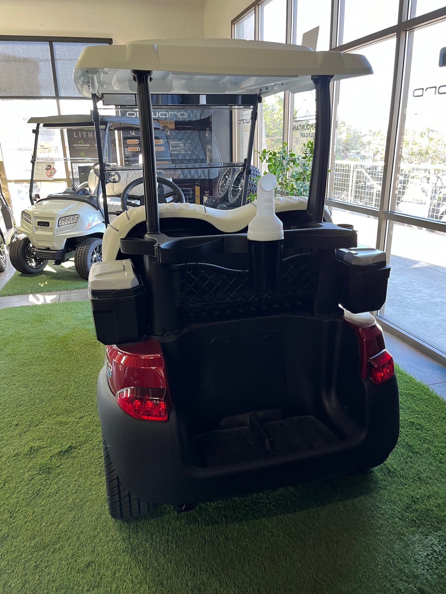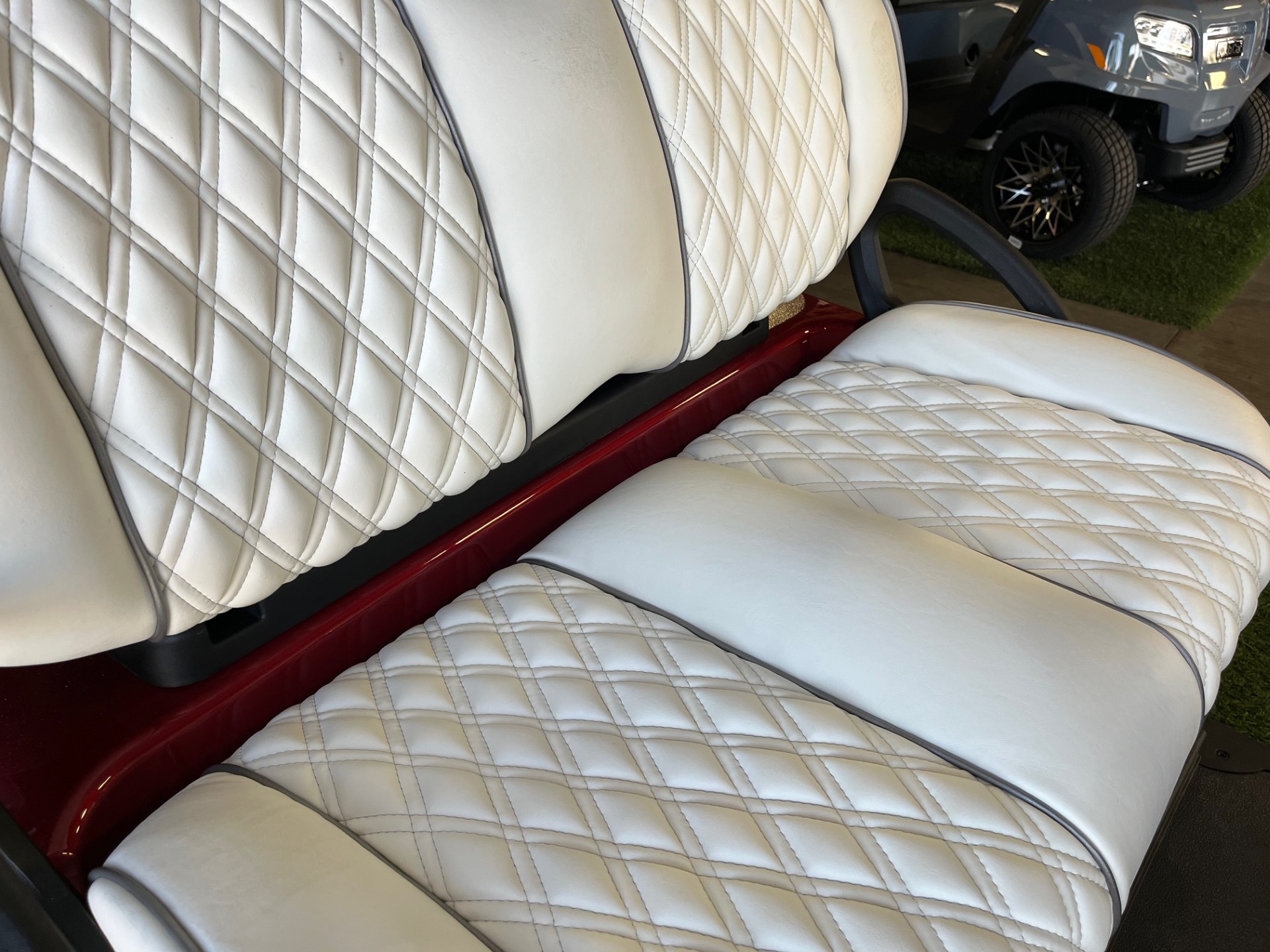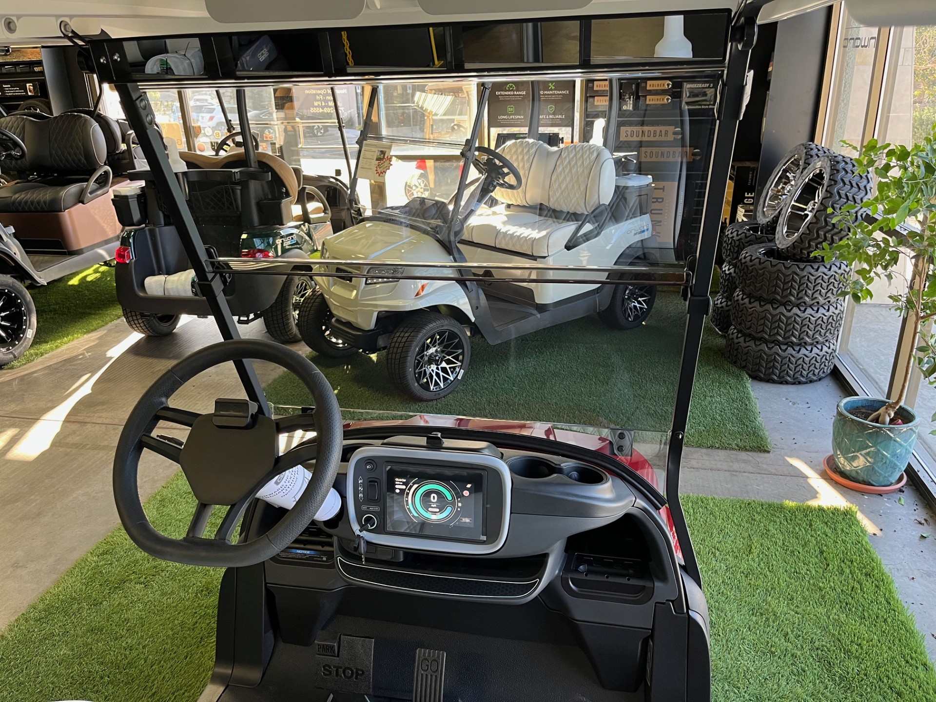 Extended Range Lithium Battery w/ Charger, Ultra-Premium White Diamond Stitched Seating, Premium Tinted/Folding Windshield, Digital Display, Wireless Phone Charger x2, USB/USB-C Port, Locking Storage, 5-Panel Mirror, 12″ Athena Wheels/Tires, Cooler x2, Sand/Seed Bottle.