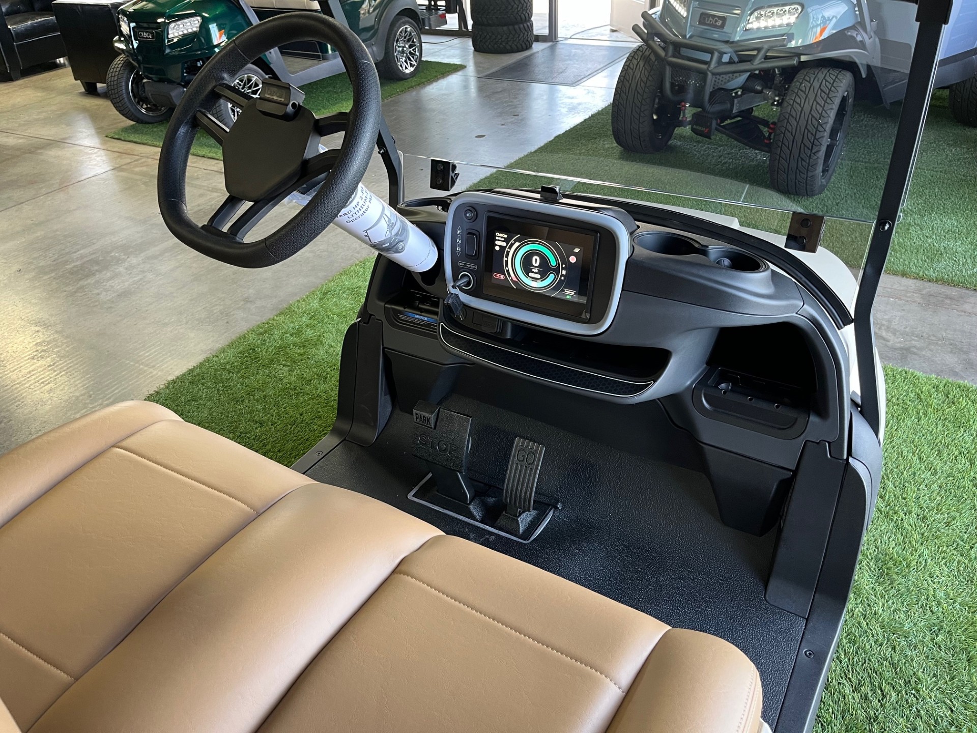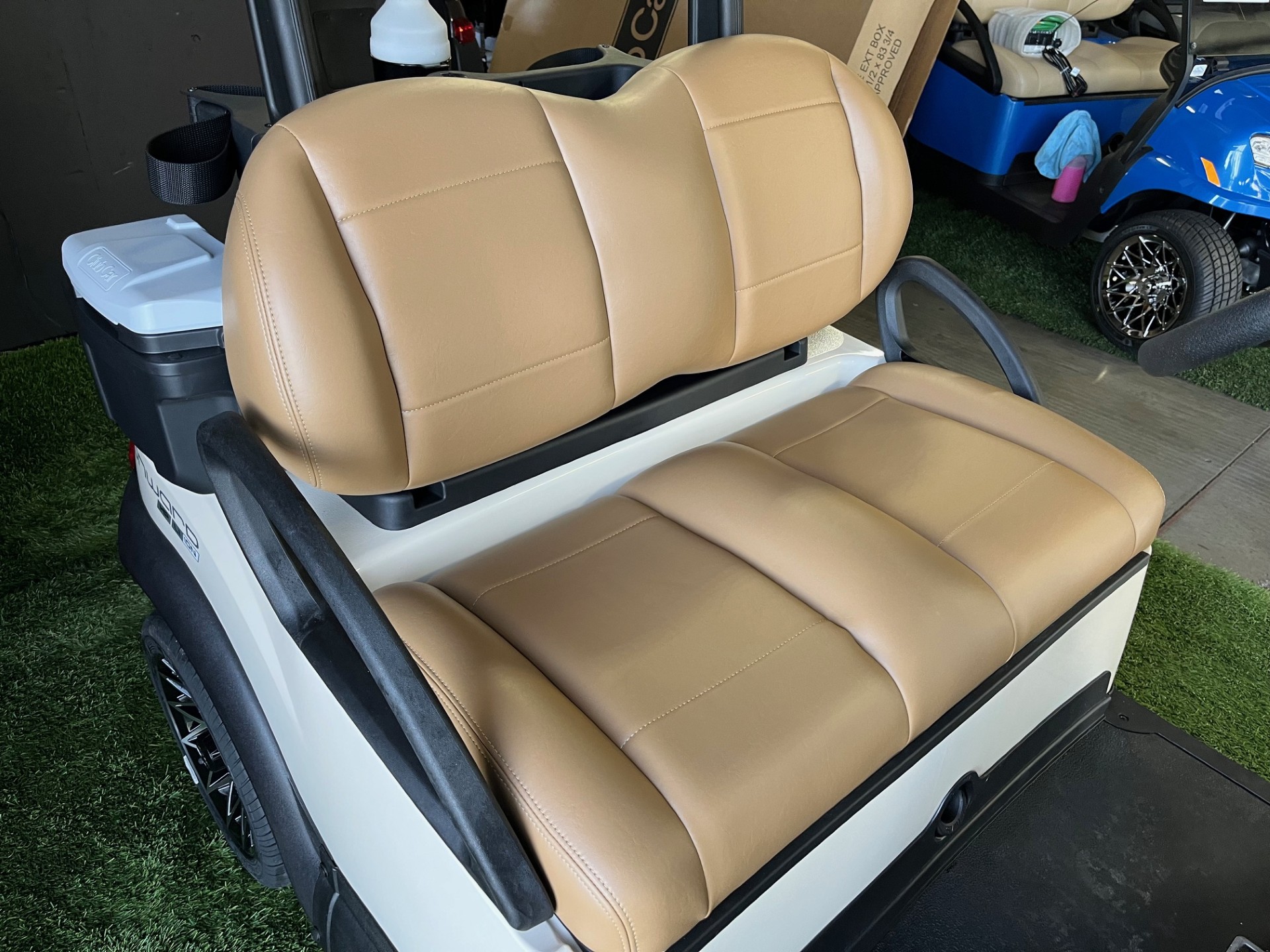 Lithium Battery w/ Charger, Metallic Cashmere Paint, Digital Display, Wireless Phone Charger x2, USB/USB-C Port, Complete LED Lighth Kit w/ Horn/Blinkers/Hazard/Horn, Premium Seating, Premium Tinted/Folding Windshield, 12″ Athena Wheels/Tires, Cooler x2, Sand/Seed Bottle