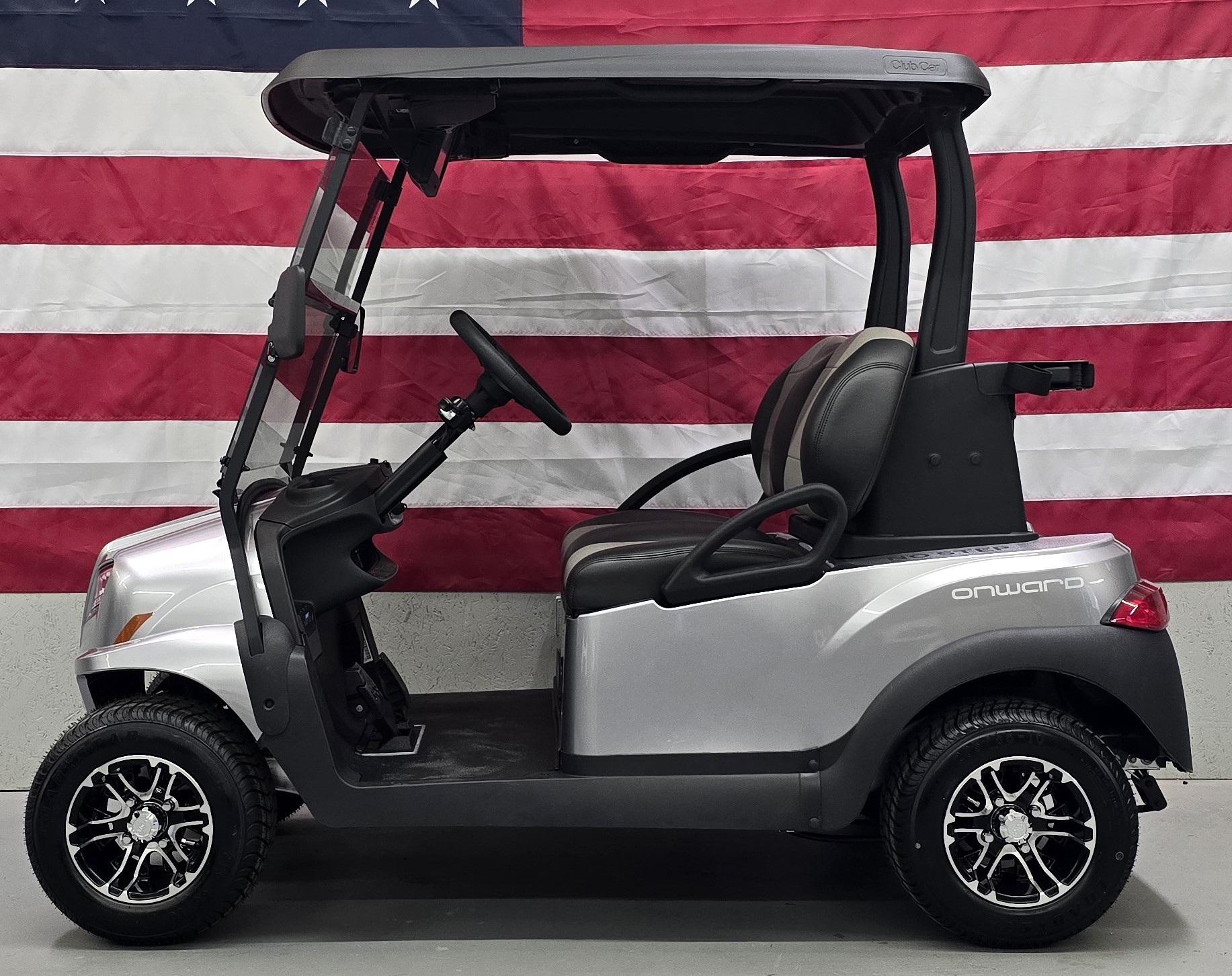 Brand New 2026 Metallic Signature Silver Club Car ONWARD – Lithium Battery, Dual Wireless Phone Chargers, Locking Dash, Dual USB, and Digital Display