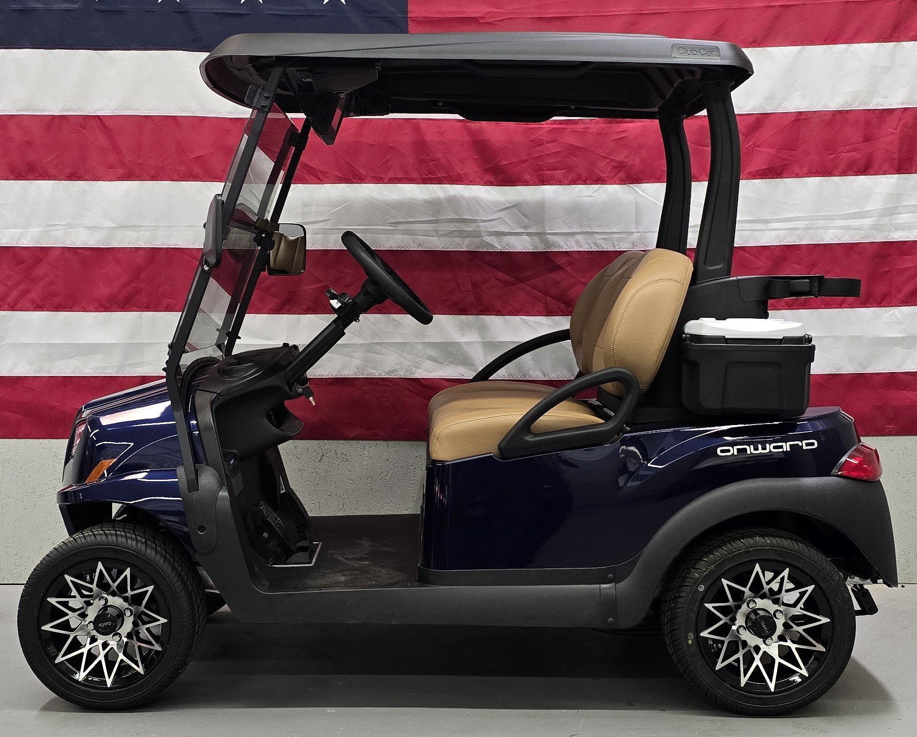 Brand New 2026 Metallic Blue Onyx Club Car ONWARD – Lithium Battery, Dual Wireless Phone Chargers, Locking Dash, Dual USB, Dual Coolers and Digital Display
