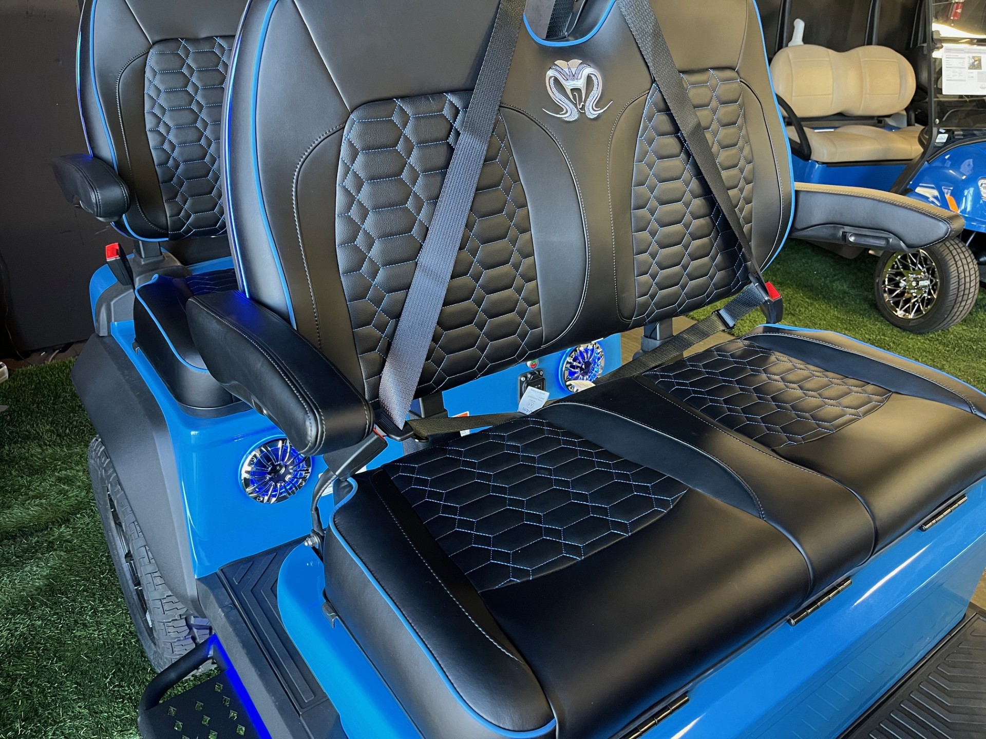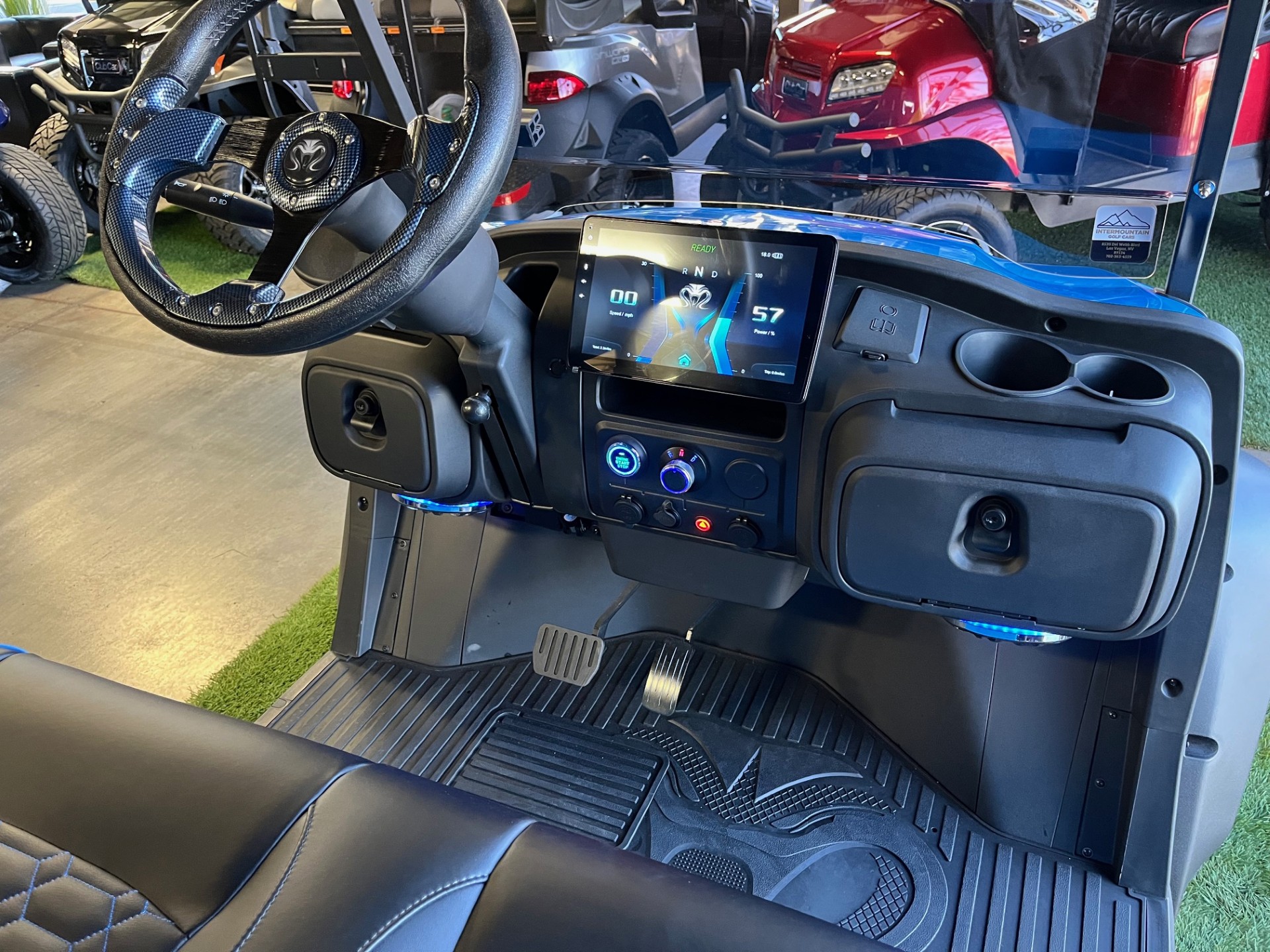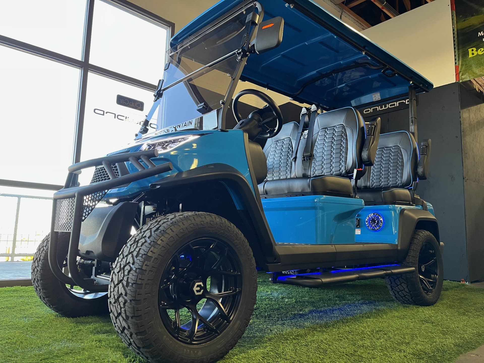 105ah Eco Lithium Battery w/ On-Board Charger, LSV-25mph, Digital Display w/ Carplay, 4-Speaker Sound System, Premium Color Matched Seating w/ Seat Belts, Locking Storage, LED Party Pack Lighting, Lifted Suspension, 14″ RideModz Wheels/Tires, Side Step Rails, USB/USB-C Port, Brush Guard
