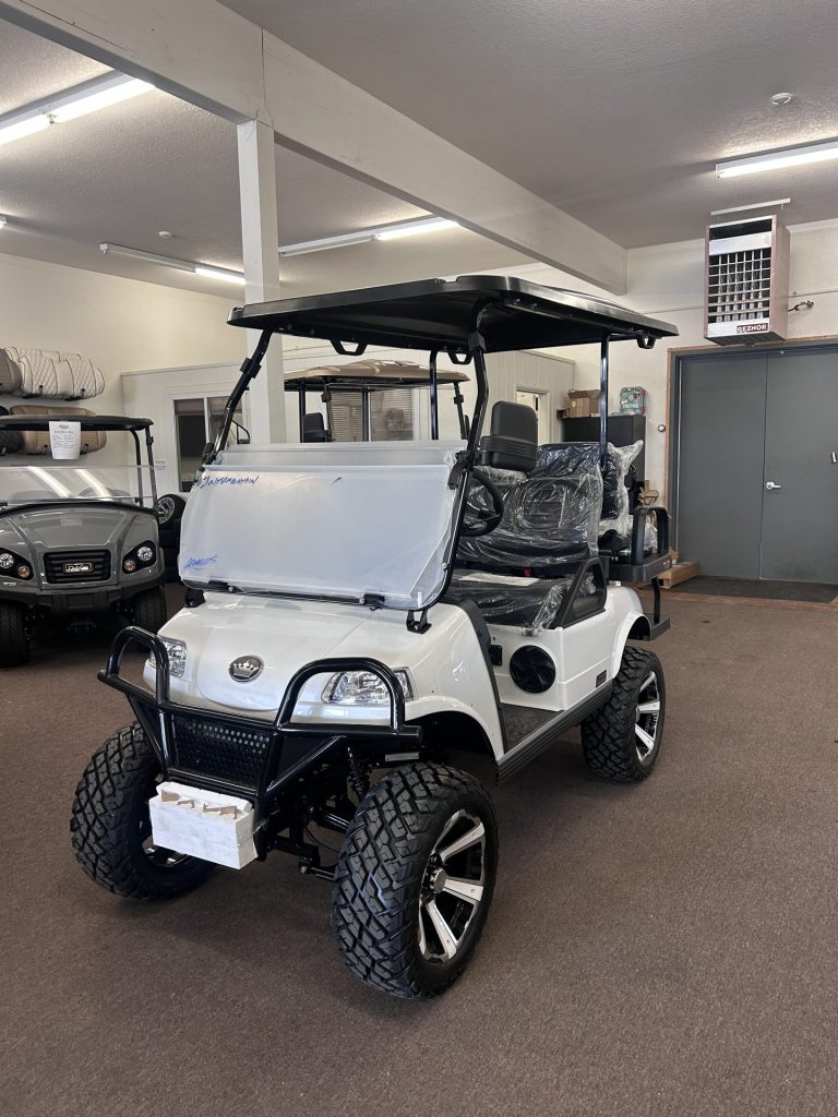 Blue TPO Injected Molded Body Cup & Golf Ball Holders Canopy Handles Storage Sweater Basket Luxury Black Stitched Seats Safety Belts Luxury Steering Wheel DOT Fold-down Acrylic Windshield 48-V Lithium Battery (6.3Kw) AC Motor and Controller, 400 Amp 48-V 6.3KW AC Motor 14″ Custom Aluminum Wheels Premium 14” Tires Matching Multi-function Dashboard 9″ Touchscreen […]