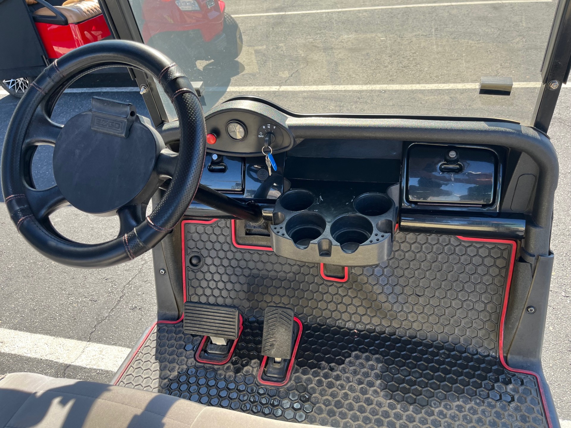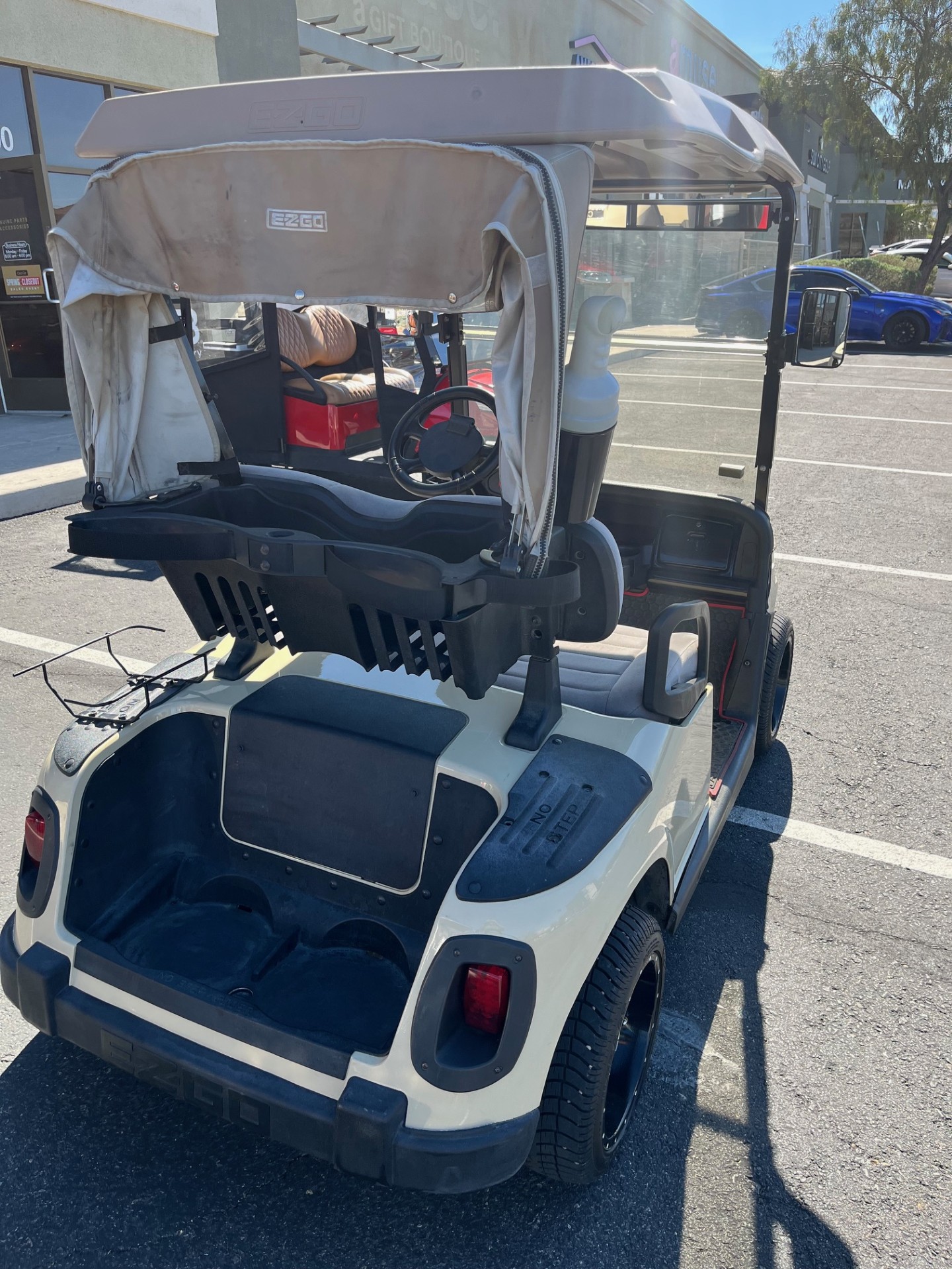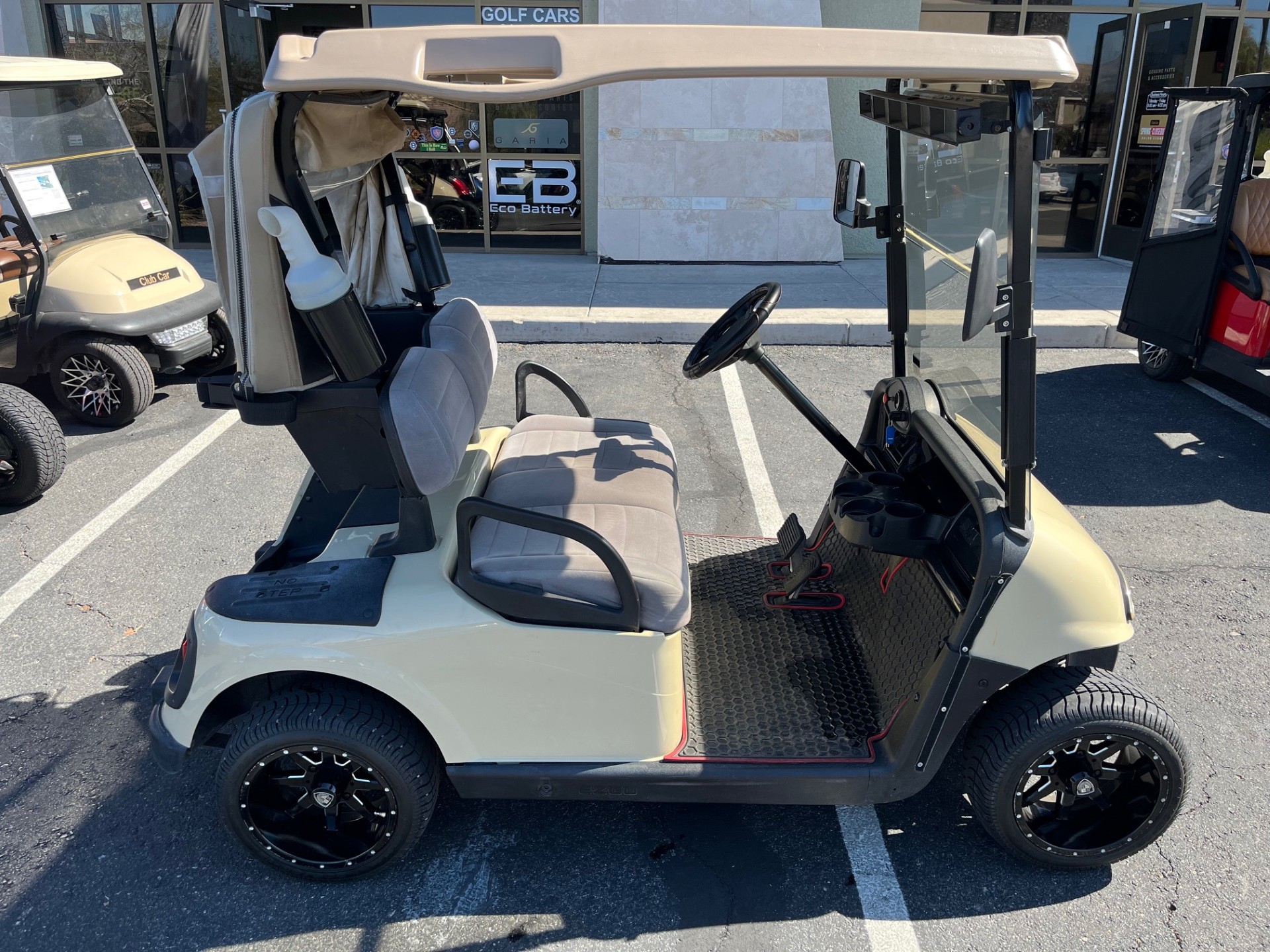 New Trojan Batteries(installed after purchase), New Navitas High Speed Controller (25mph), Custom 12″ Wheels/Tires, Club Rain Cover, 5-Panel and Side Mirrors, Battery Charger.