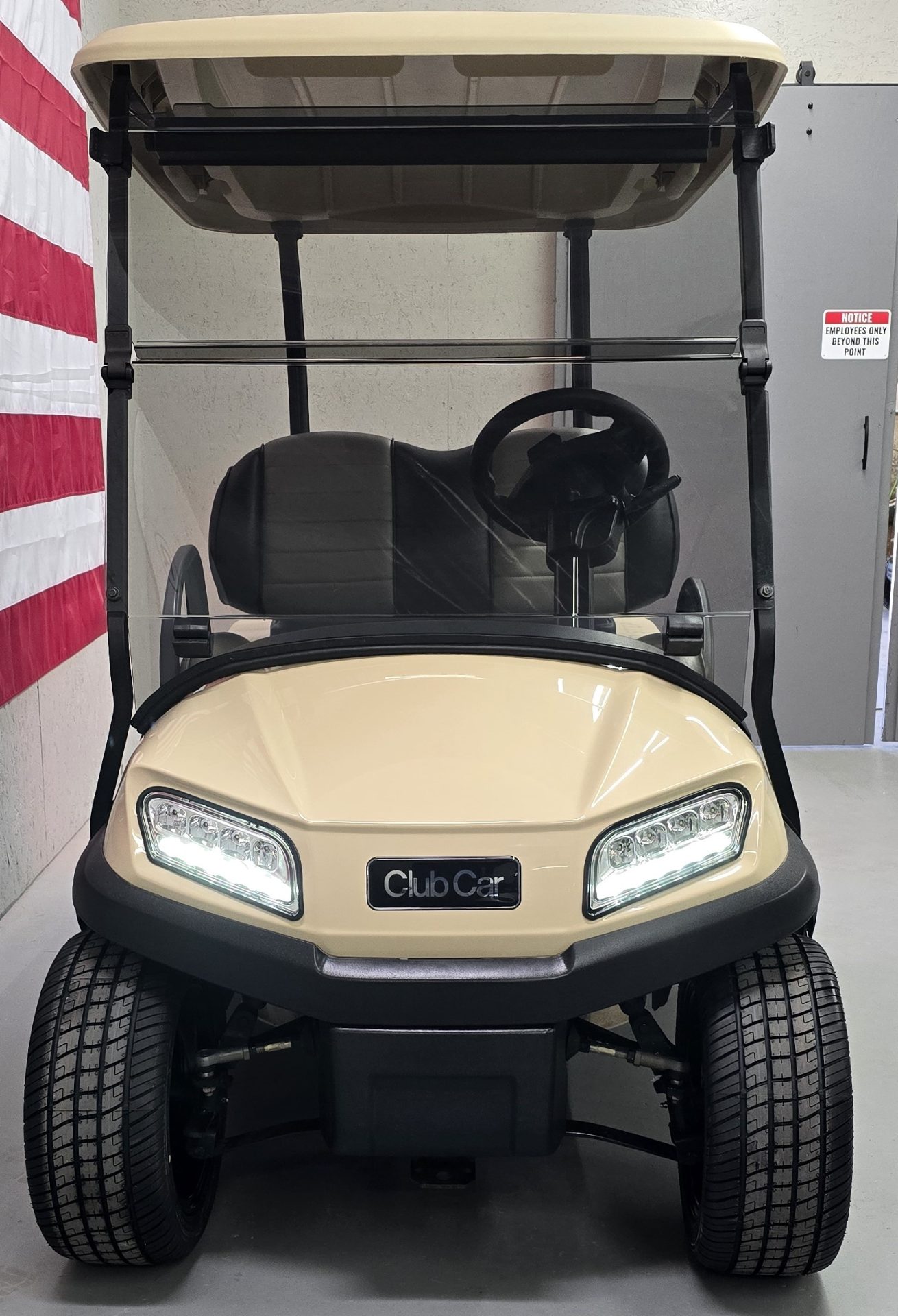 Refurbished Beige Club Car Precedent – HP LITHIUM with Custom Wheels, Premium Seats, and Lights