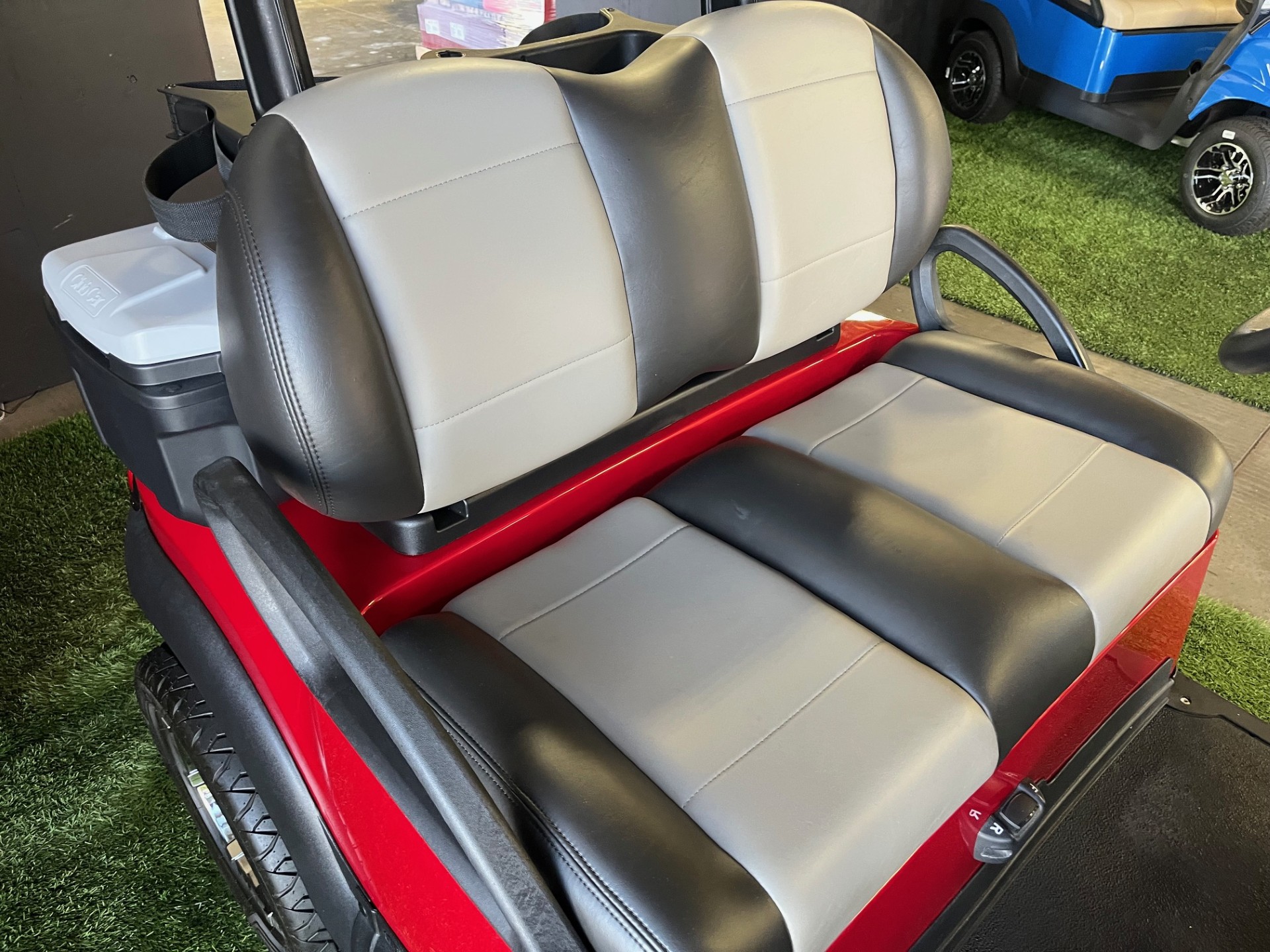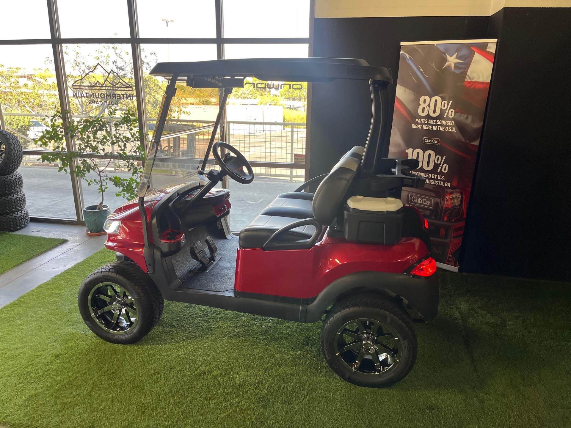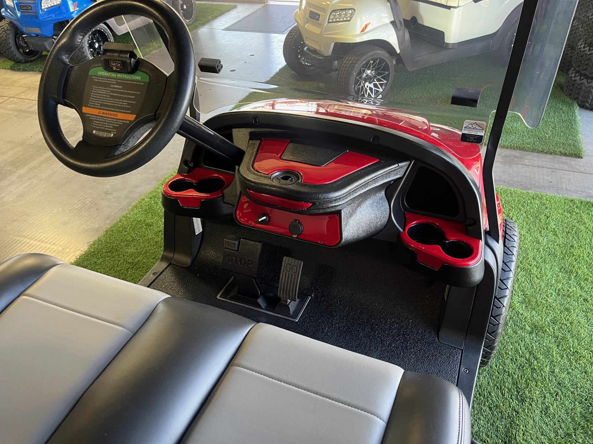 Eco Lithium Battery w/ On-Board Charger, Custom Phoenix Body Kit w/ Custom Color Matched Dash. Locking Storage, 4″ Suspension Lift Kit, 14″ Premium Smoked Chrome Wheels w/ 23″ Turf Approved Tires, Premium Seating, Tinted/Folding Windshield, Cooler x2.