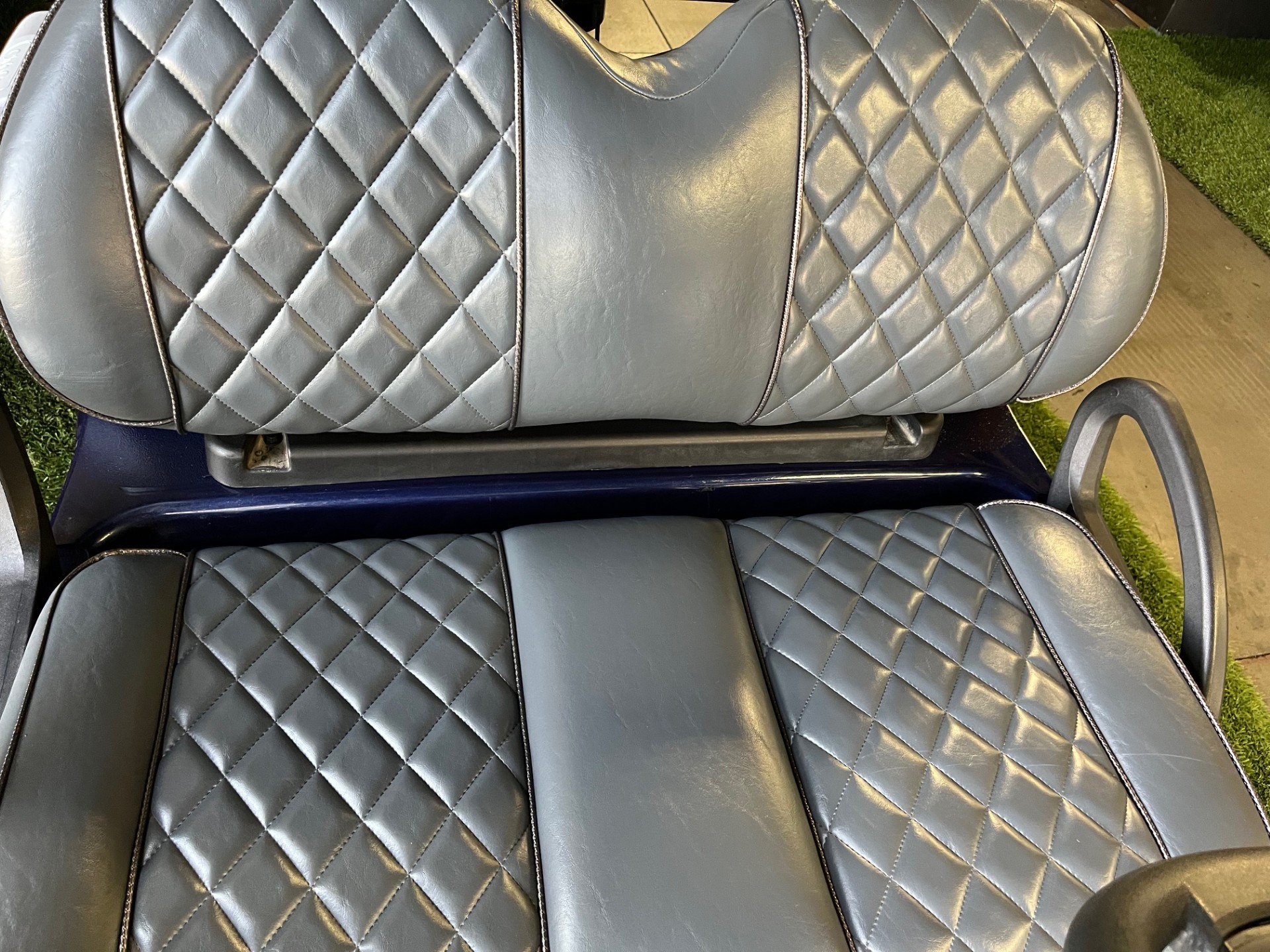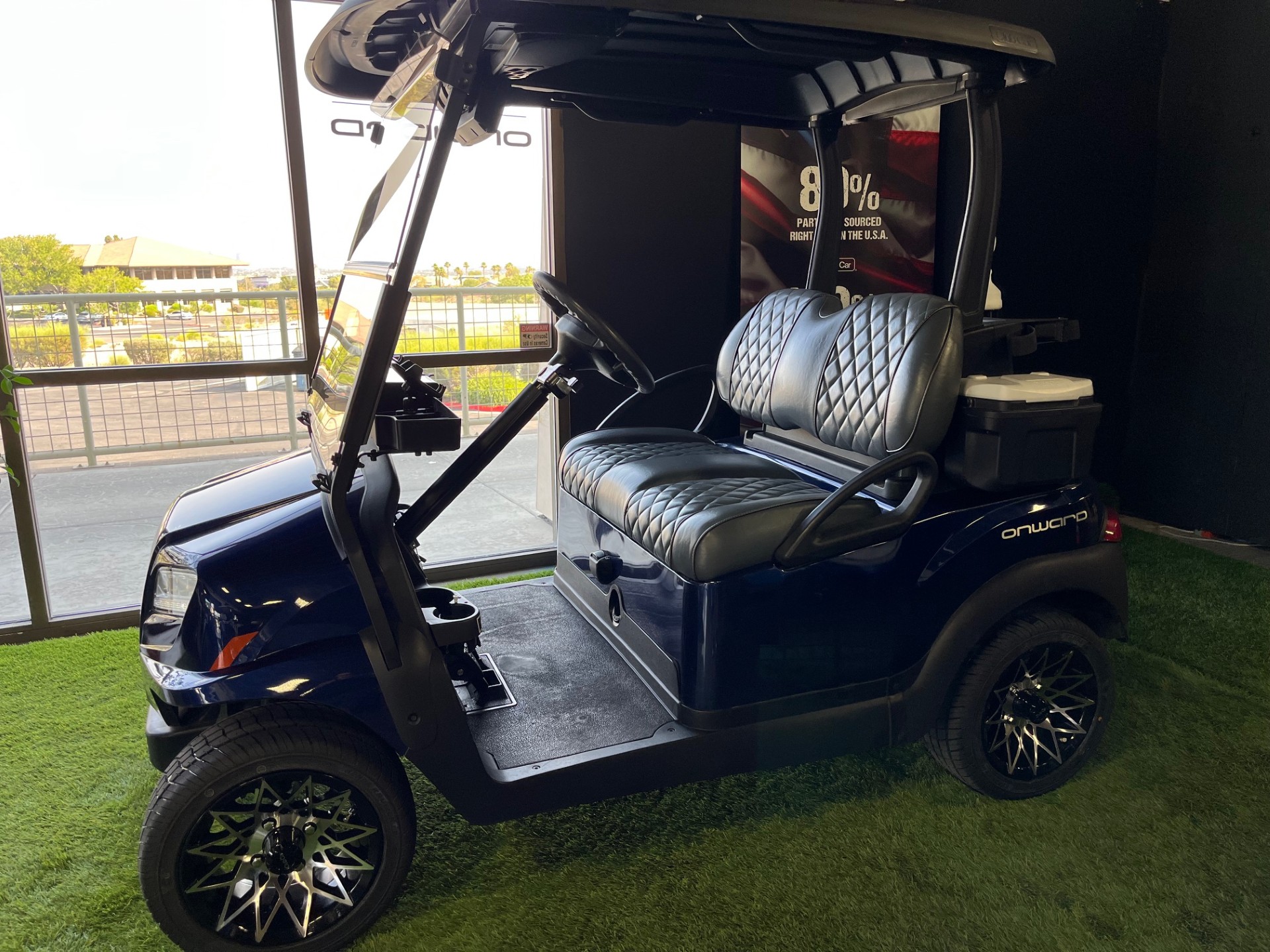 New Eco Lithium Battery w/ On-Board Charger, Digital Display w/ Bluetooth Speakers( add golf GPS for just $500), High Performance Controller w/ On-the-Fly Programmer(25mph), HS Gears, new 12″ Athena Wheels/Tires, Custom Diamond Stitch Seats, Tinted/Folding Windshield, Locking Dash Tray w/ Cell Phone Holder x2, USB Charge Port, Cooler x2, Sand/Seed Bottle.