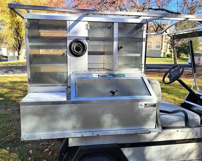Your next side-hustle just rolled in! This battle-tested jade green gas-powered beverage cart is the perfect way to add instant revenue on the course, at events, or around the neighborhood.