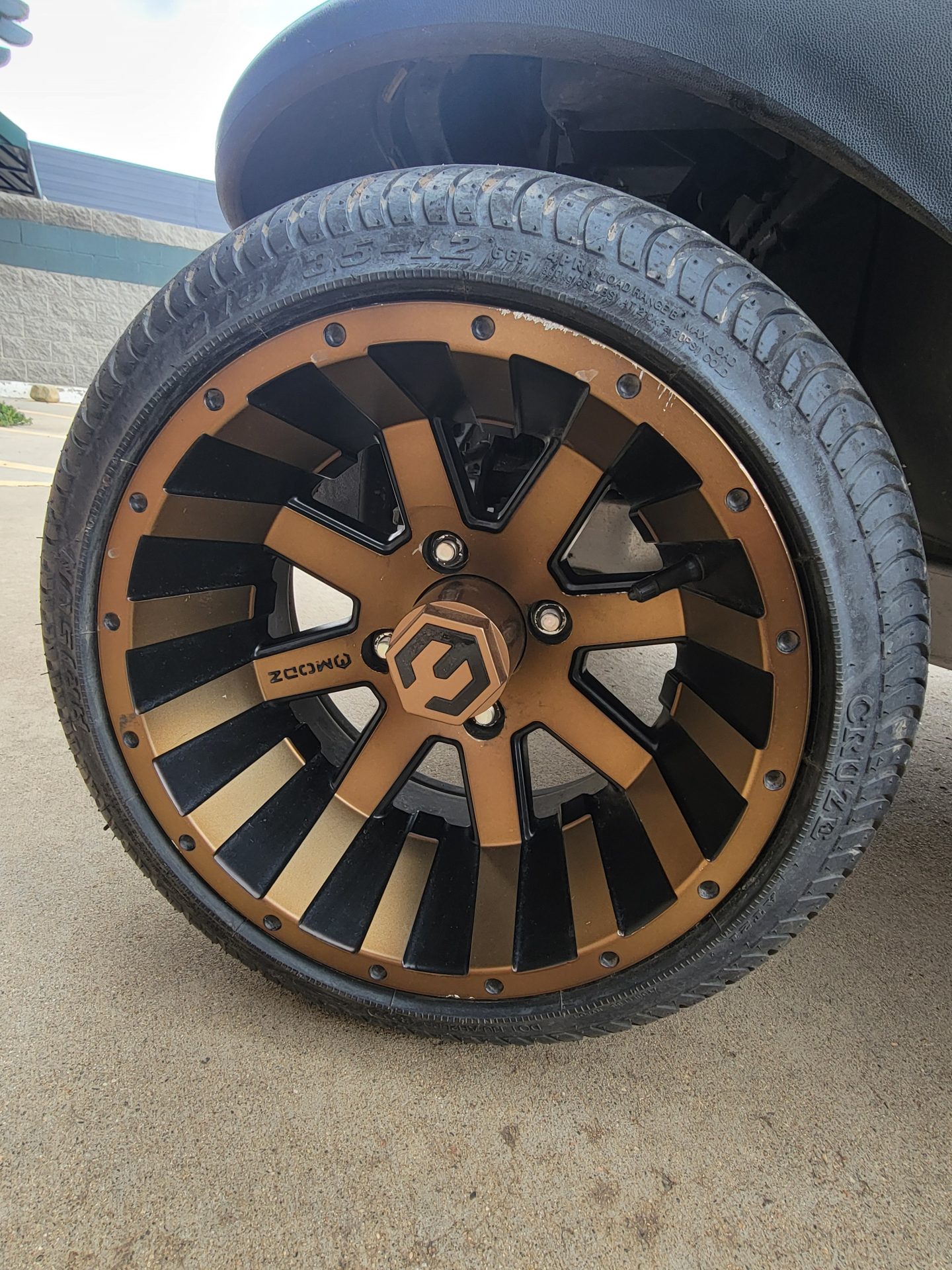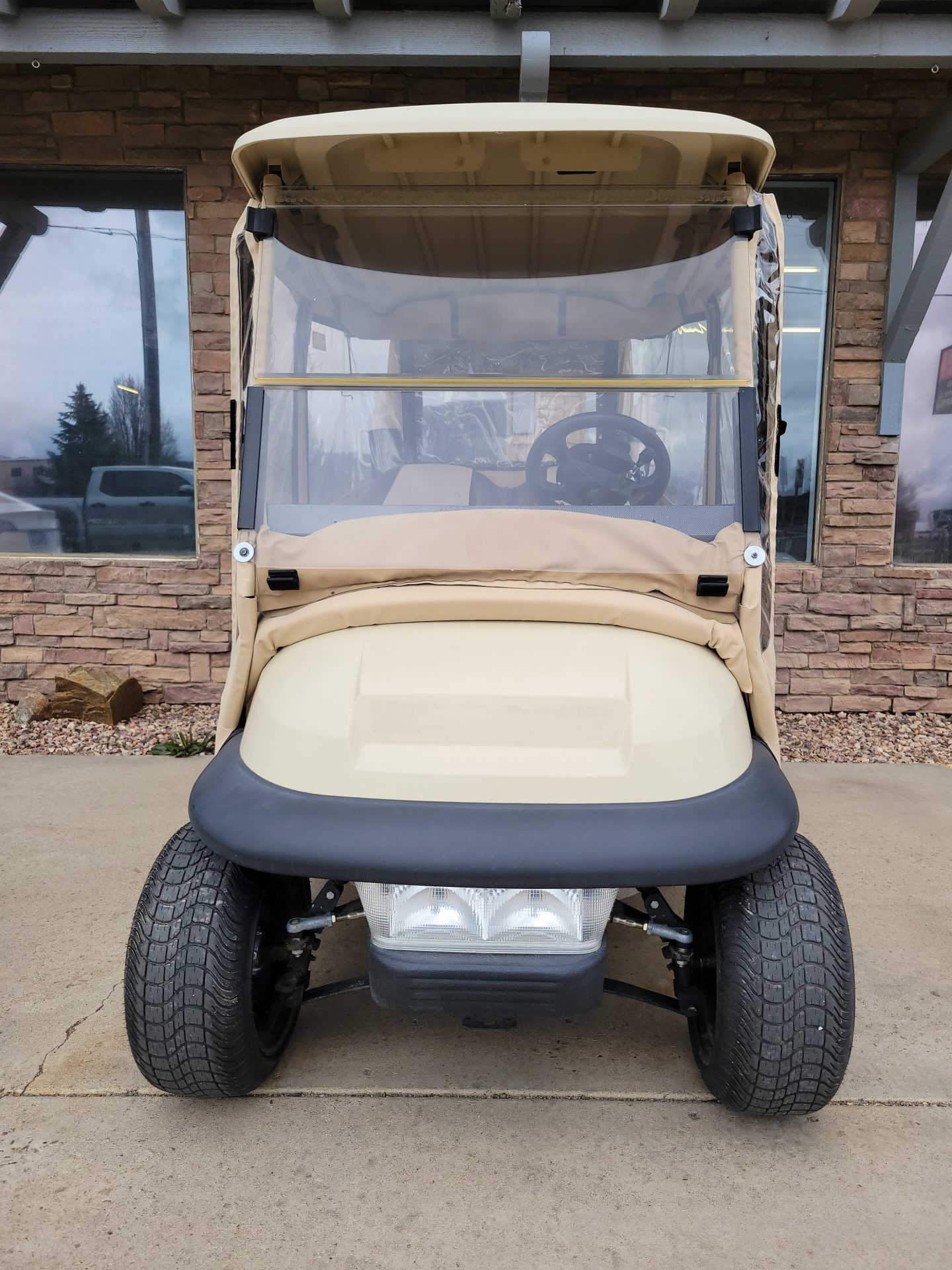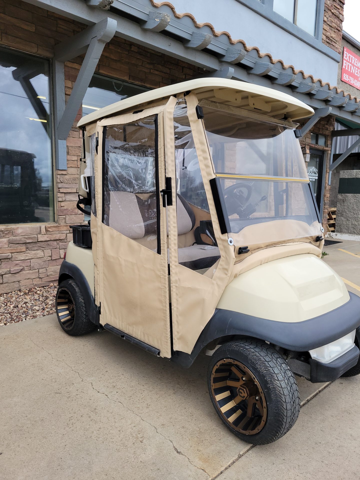 Used Beige Club Car Precedent – Electric with Custom Wheels, Full Hinged Door Enclosure, and Lights