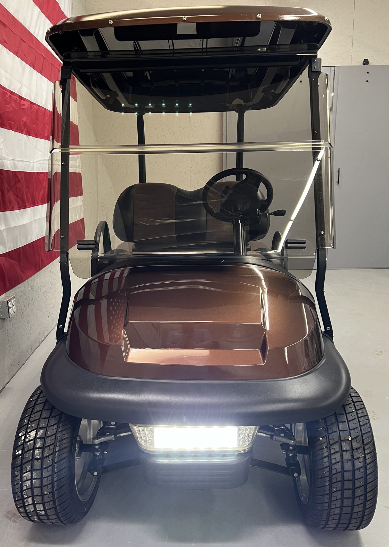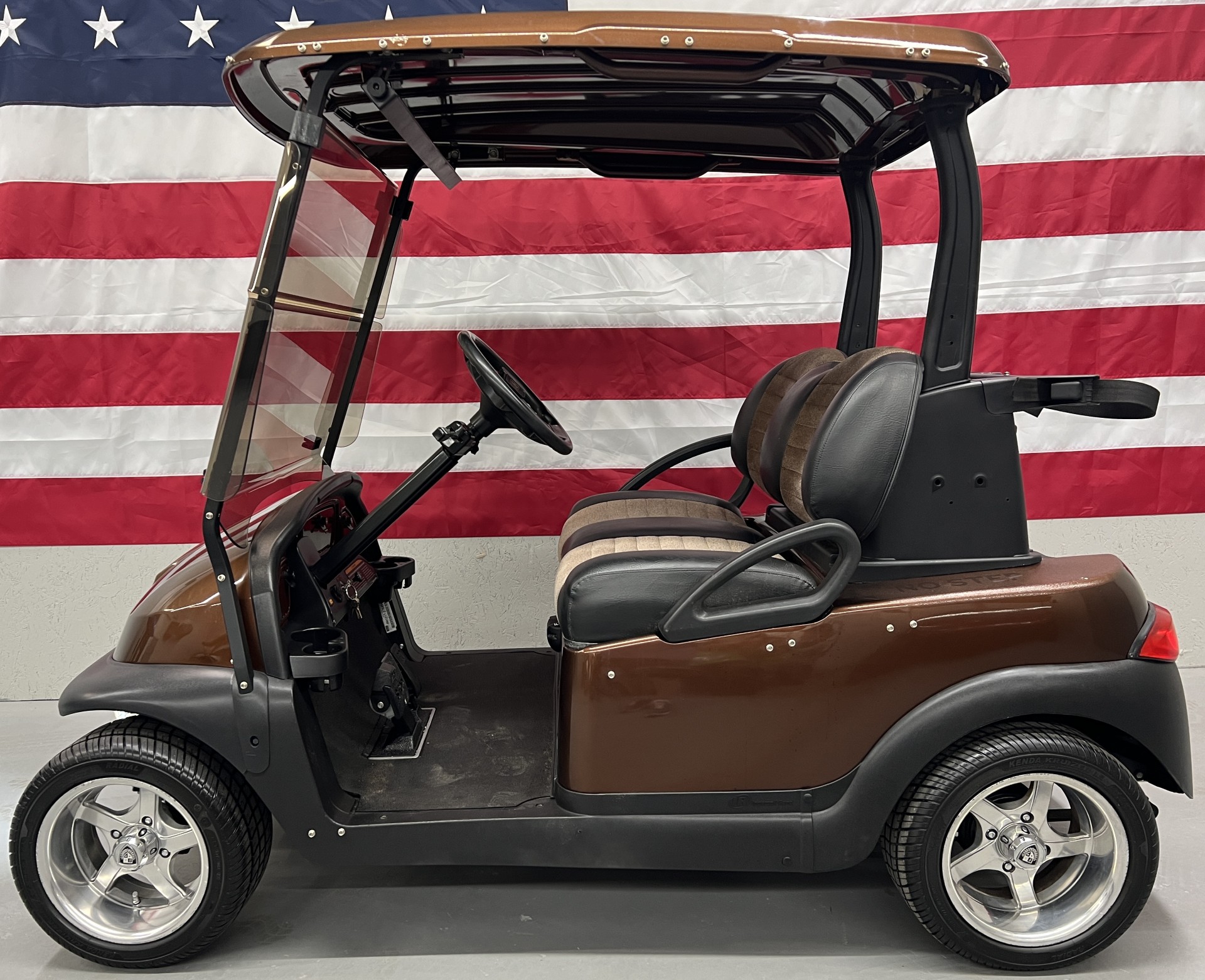 Used Mocha Brown Club Car Precedent – Electric Golf Cart with Custom Wheels, New Batteries, and Lights
