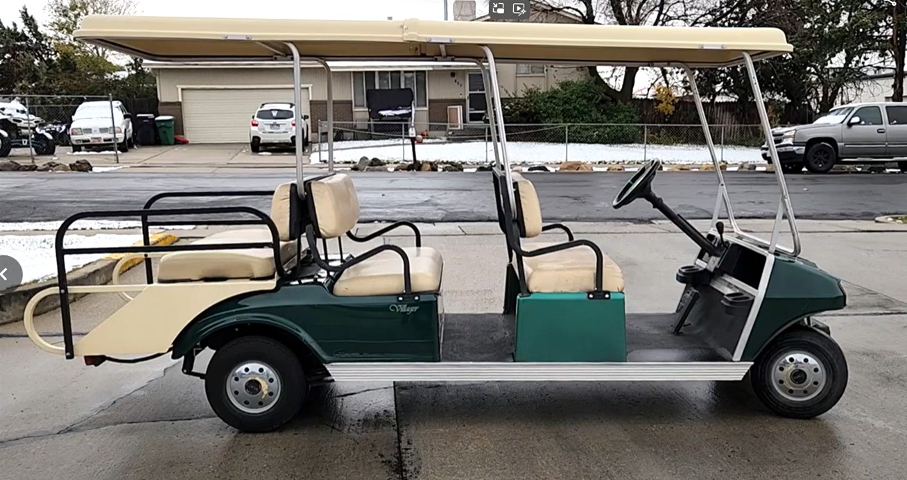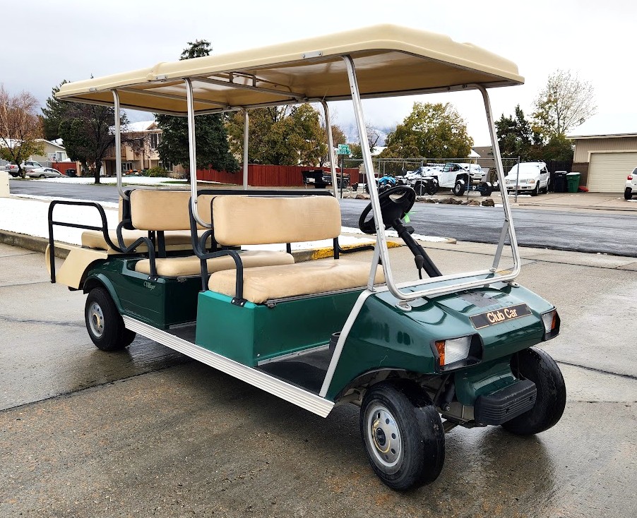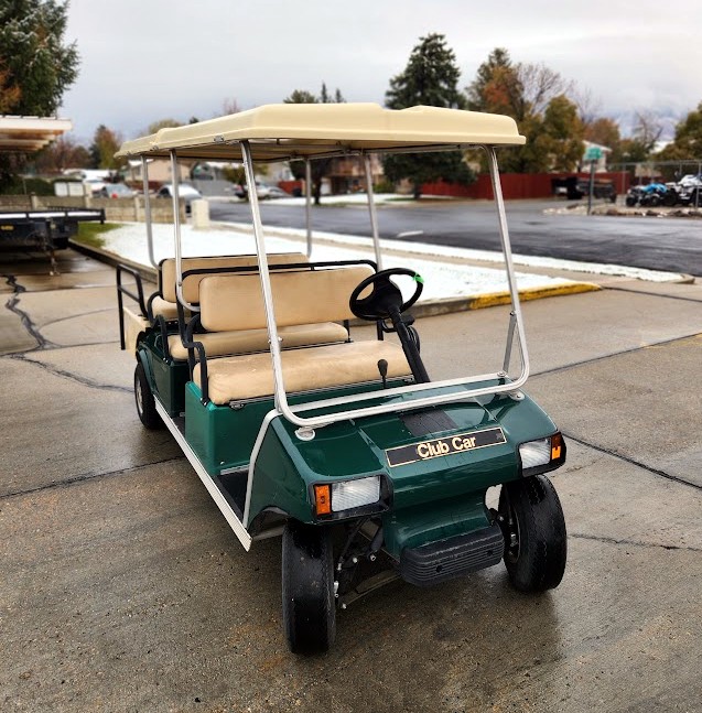 2013 6-Passenger Jade Gren Club Car Villager gas-powered golf cart available in our Sandy location.