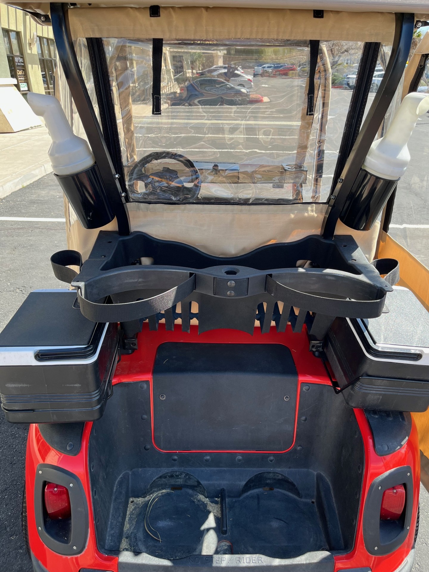 Tangerine Orange Paint, Complete DoorWorks Covers, New Batteries w/ Charger, Custom 14″ Wheels/Tires, Folding Windshield, Complete LED Light Kit w/ Horn, Locking Dash Tray, Coolers, Sand/Seed Bottles.