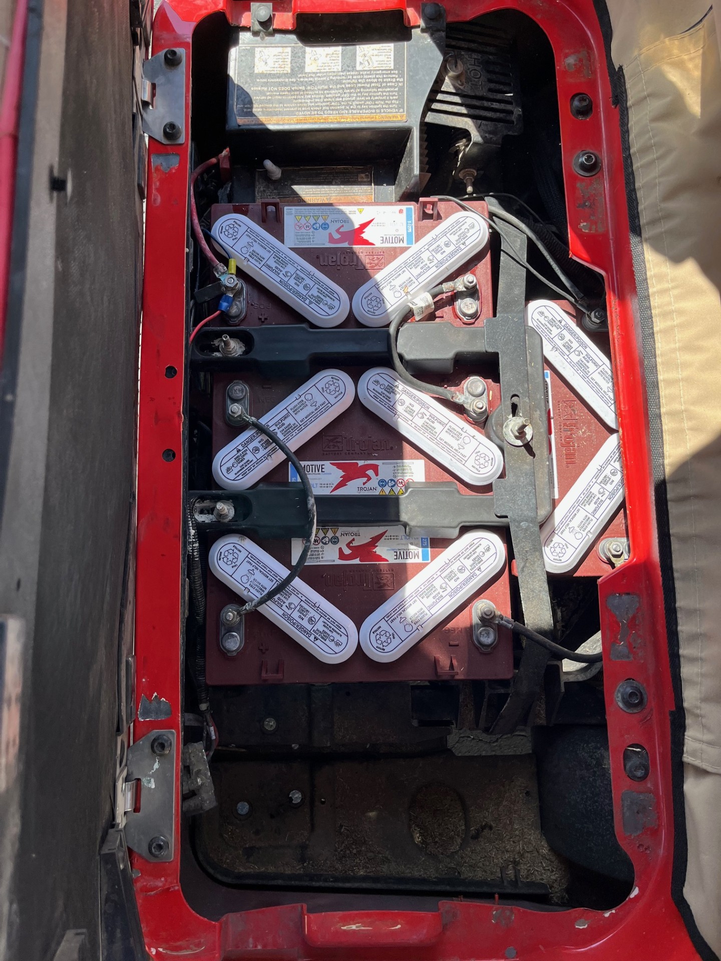 Great cart, ready for your next tee time! New batteries, custom wheels, complete enclosure!