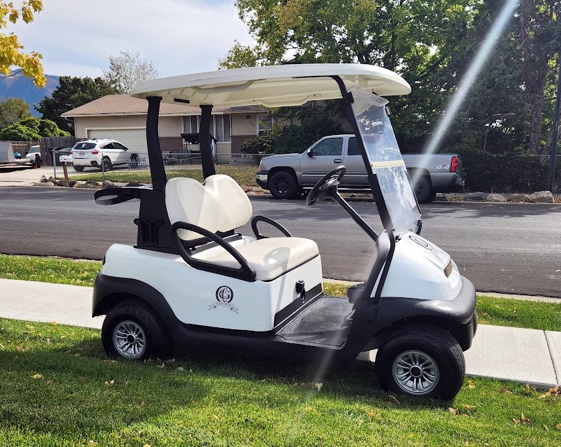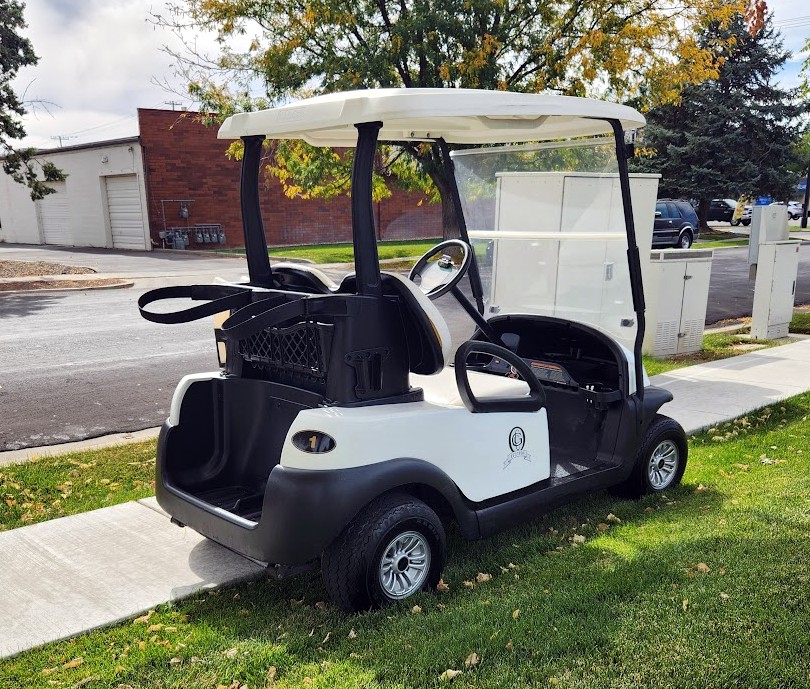 We are featuring a glacier white Club Car Precedent golf cart, taken in on trade from an elite country club