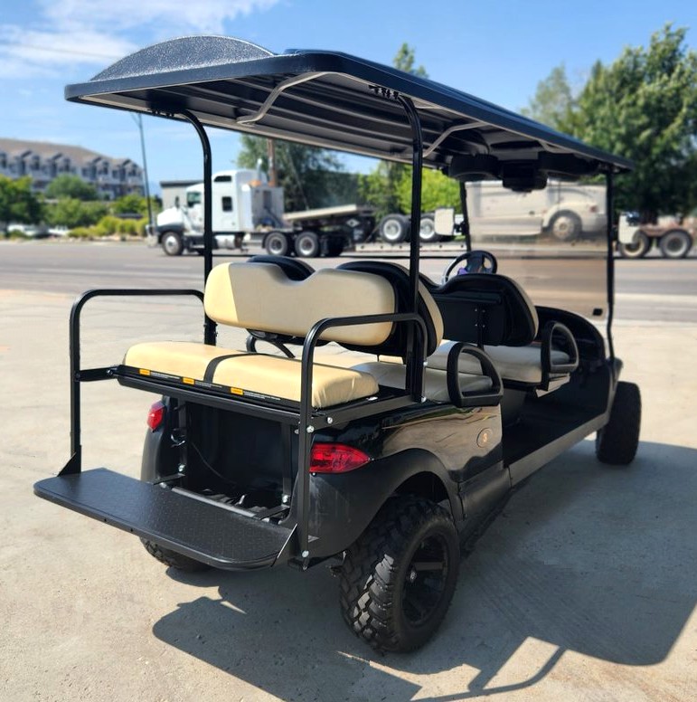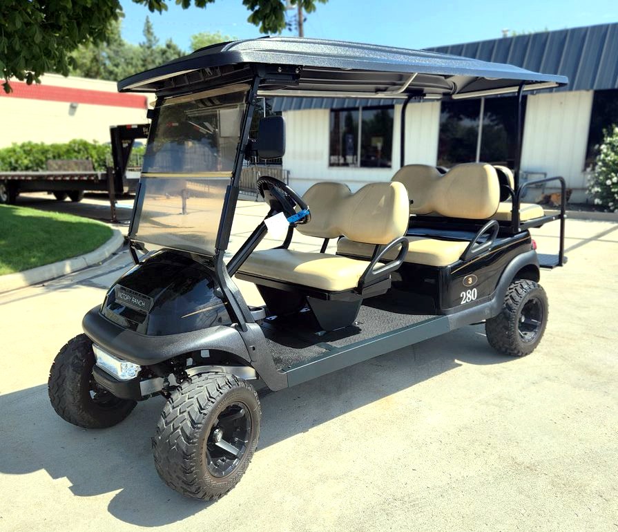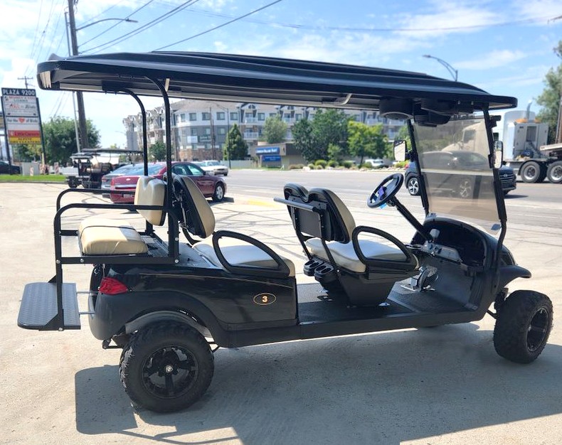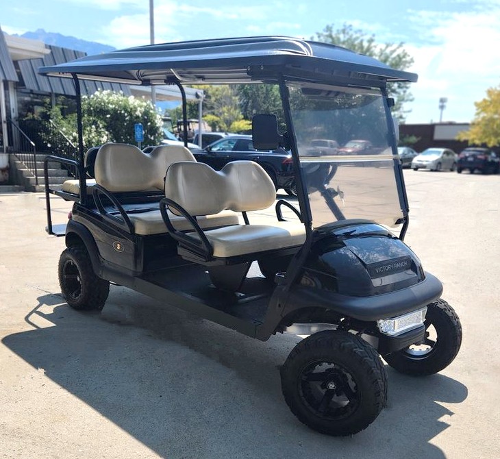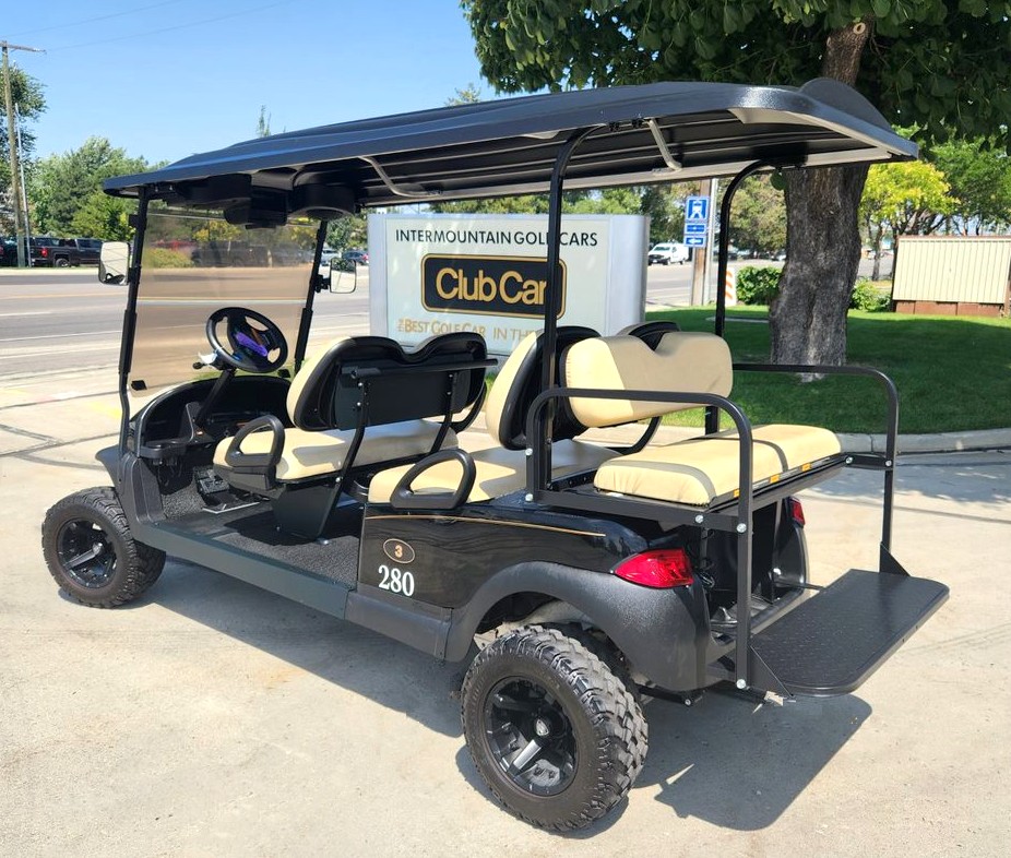In our Sandy, Utah, location we are featuring a 2016 factory-lifted 6-passenger electric tuxedo black Club Car Precedent with Lights.
