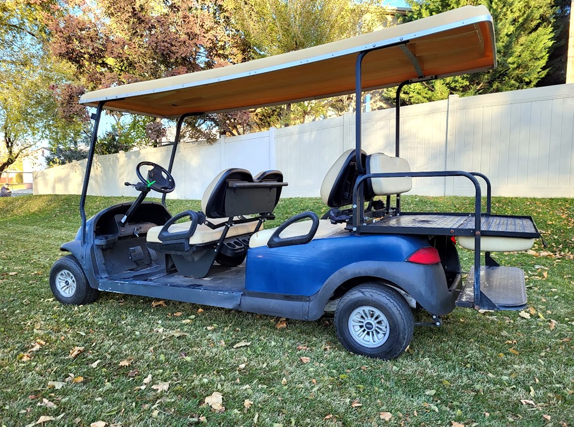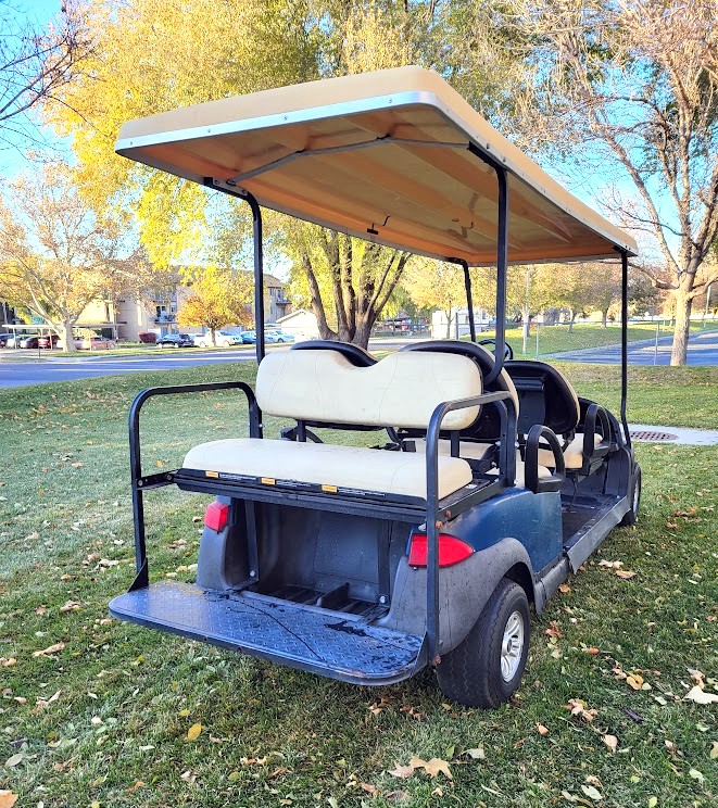 Another 6-passenger golf car just recently retired from our well-maintained Rental Fleet, a very nice 2016 6-Passenger Club Car Precedent gas-powered golf cart available in our Sandy location.