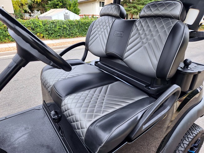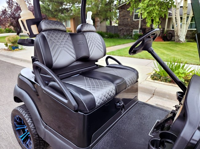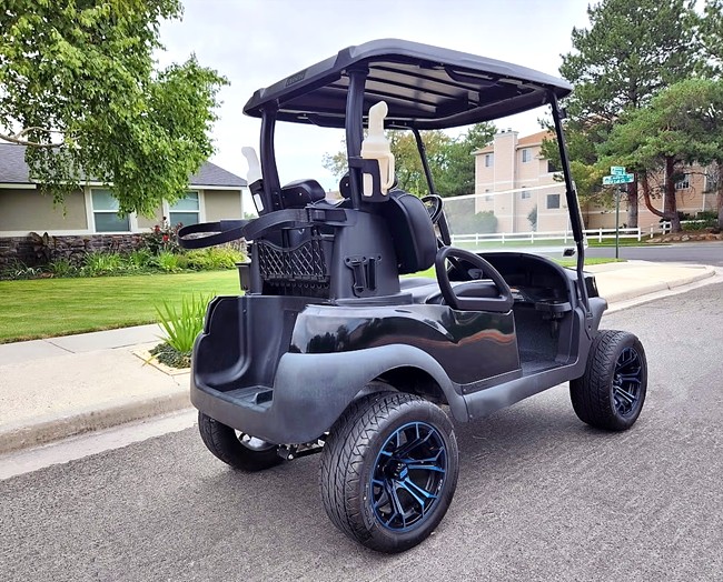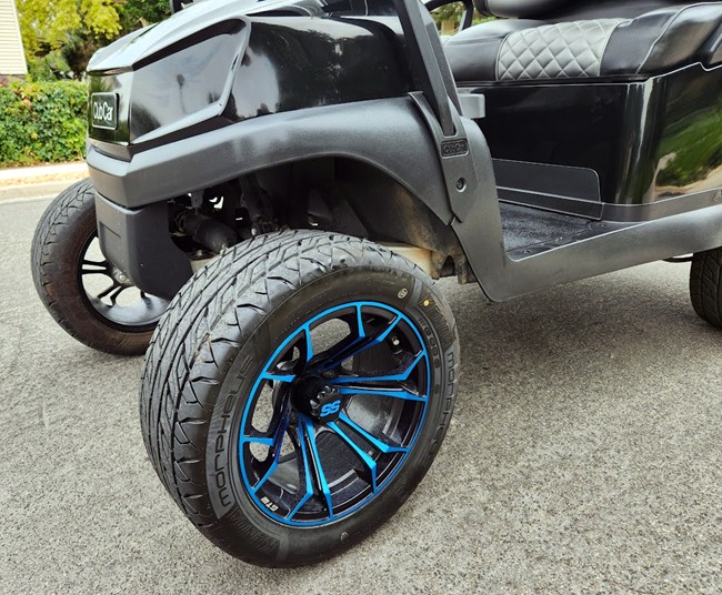 Refurbished 2020 electric Club Car Tempo golf cart, with custom paint, wheels seats, and more.