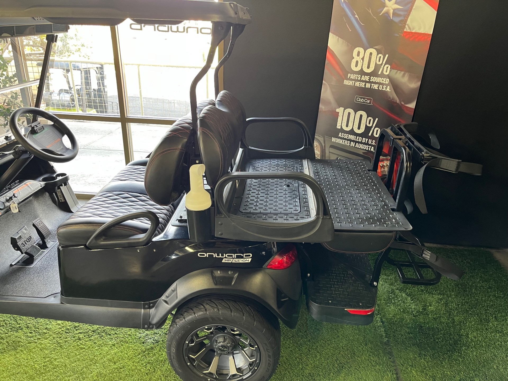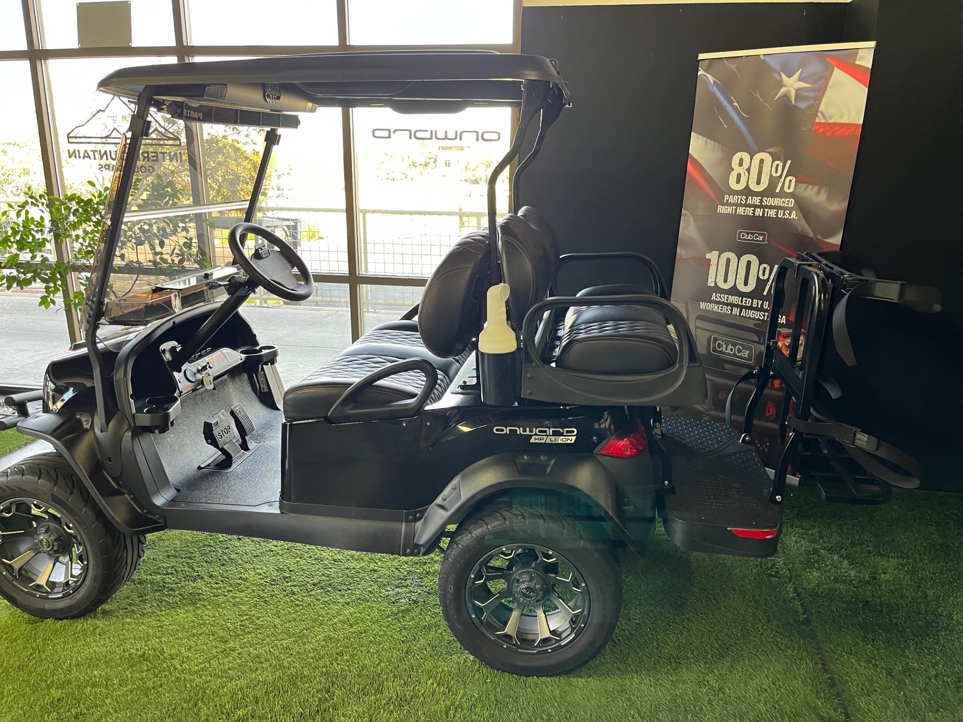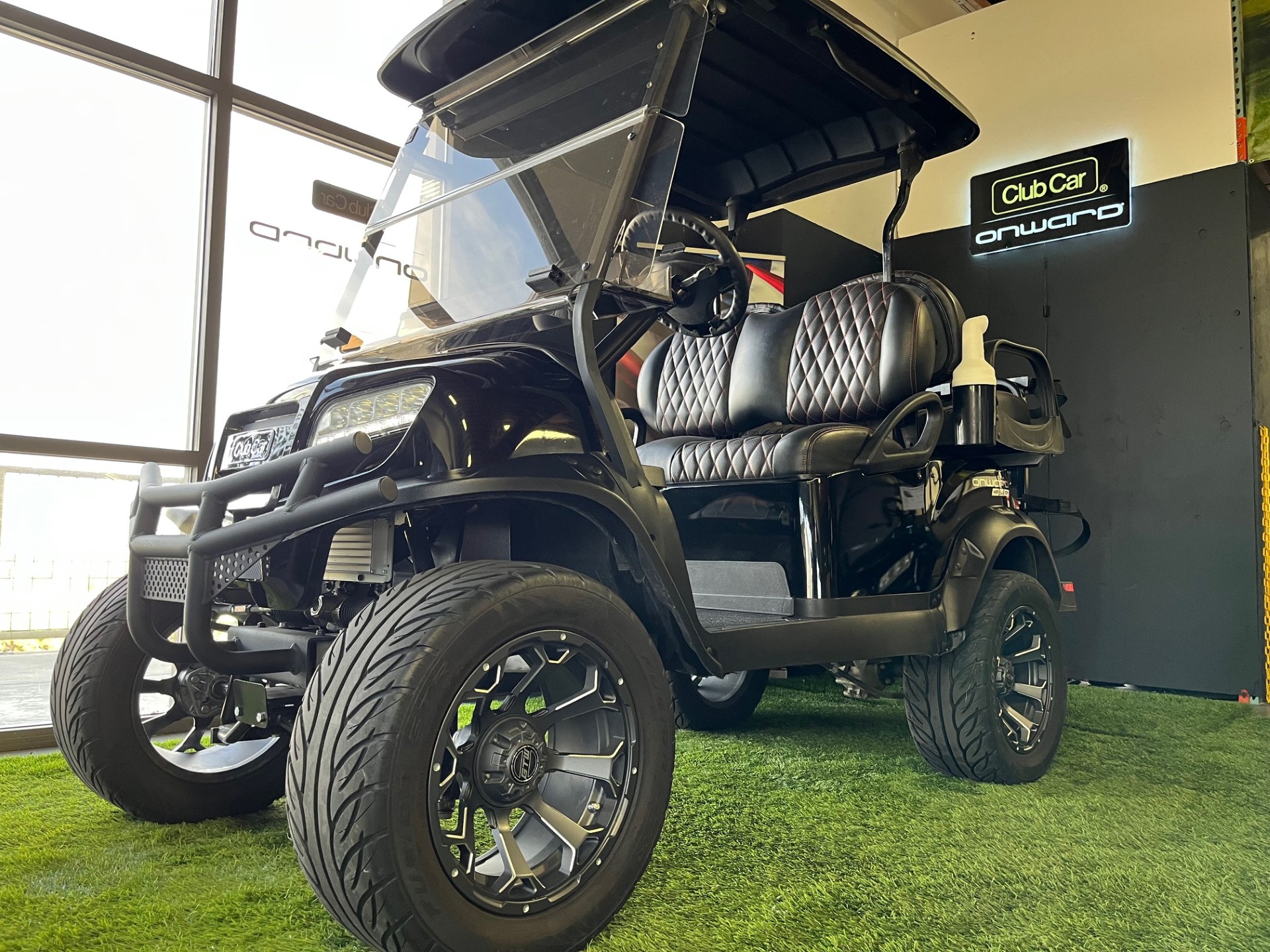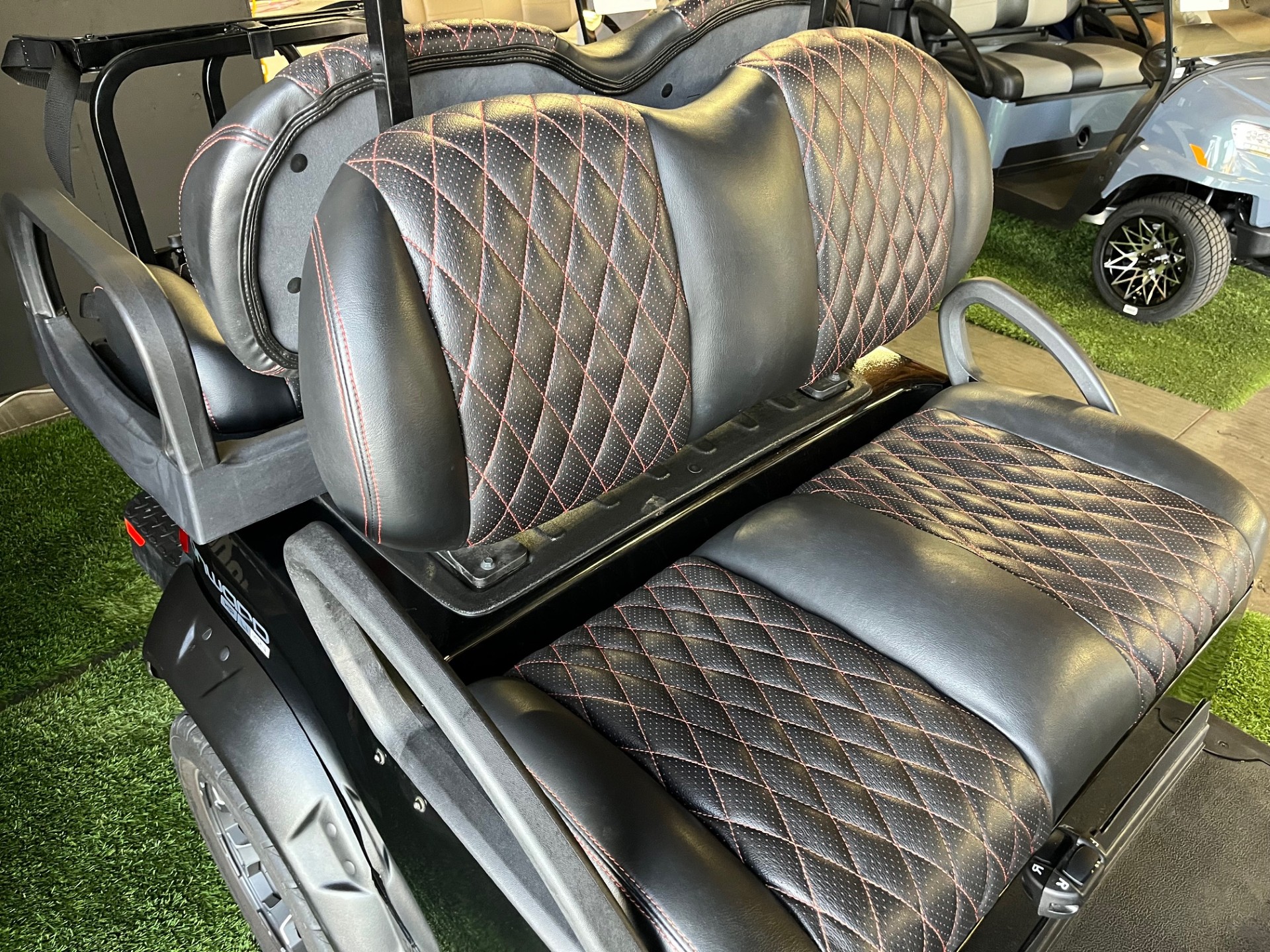 Standard Range Lithium Battery w/ Charger, Premium Sound Bar, 5-Panel Mirror, Lifted-4-Passenger, 14″ Custom Wheels/ Course Approved Tires, High Speed-25mph, Custom Diamond Stitched Seating, Rear Folding Seat w/ Under-Seat Cooler/Storage, Locking Dash Tray, Golf Bag Attachment, Sand/Seed Bottle.