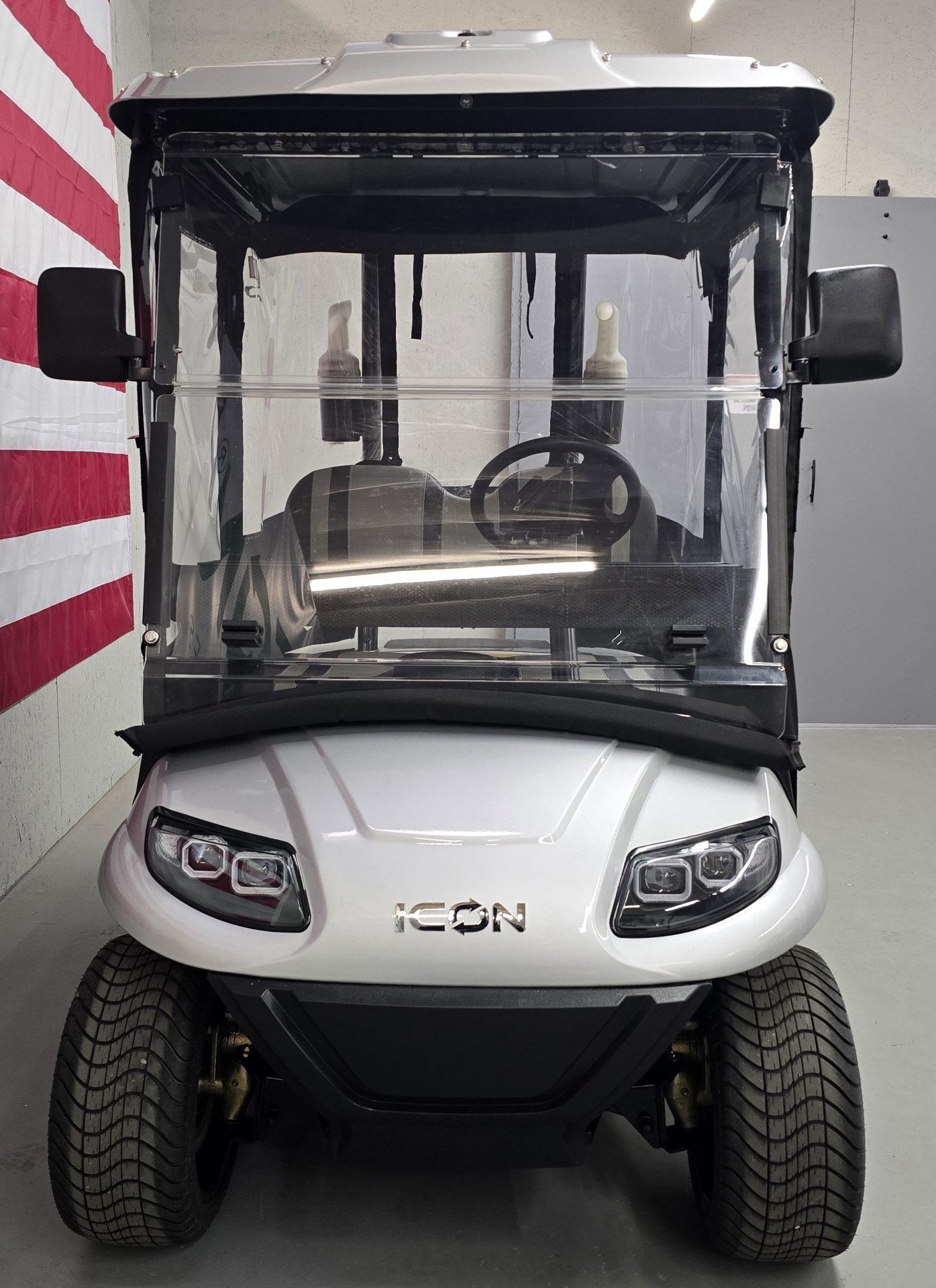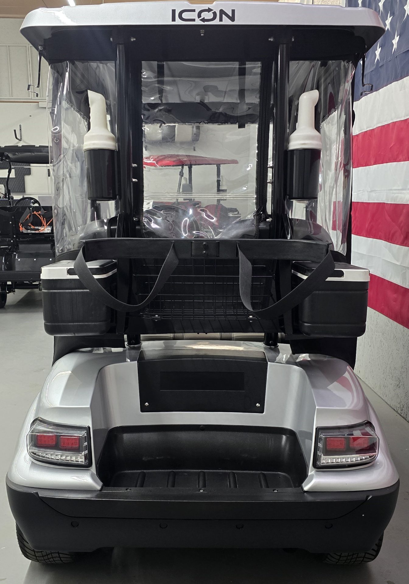 New 2024 Silver ICON EV I20 Golf Cart with 51V/105ah Lithium-ion Battery, Enclosure, Lights and Many Extras